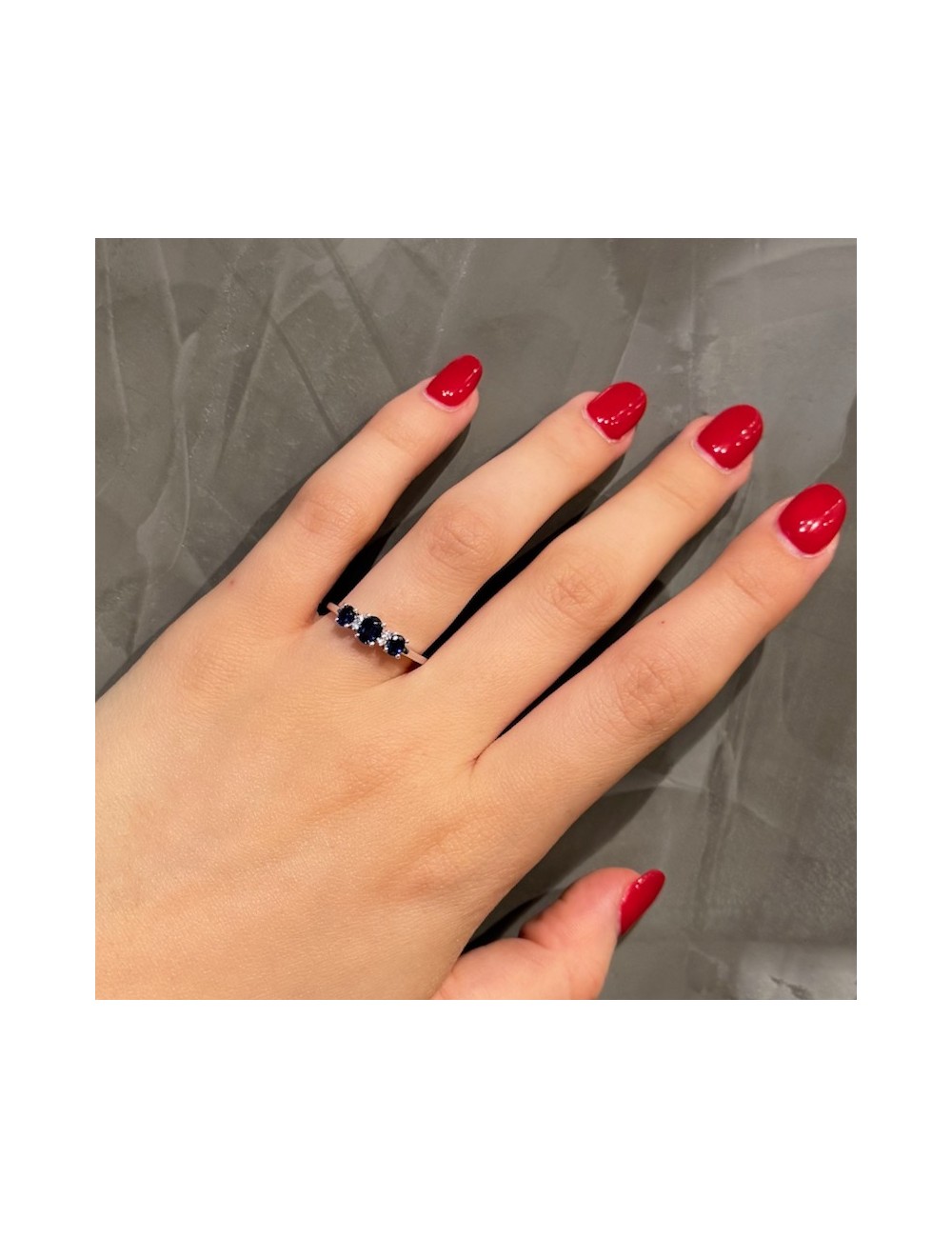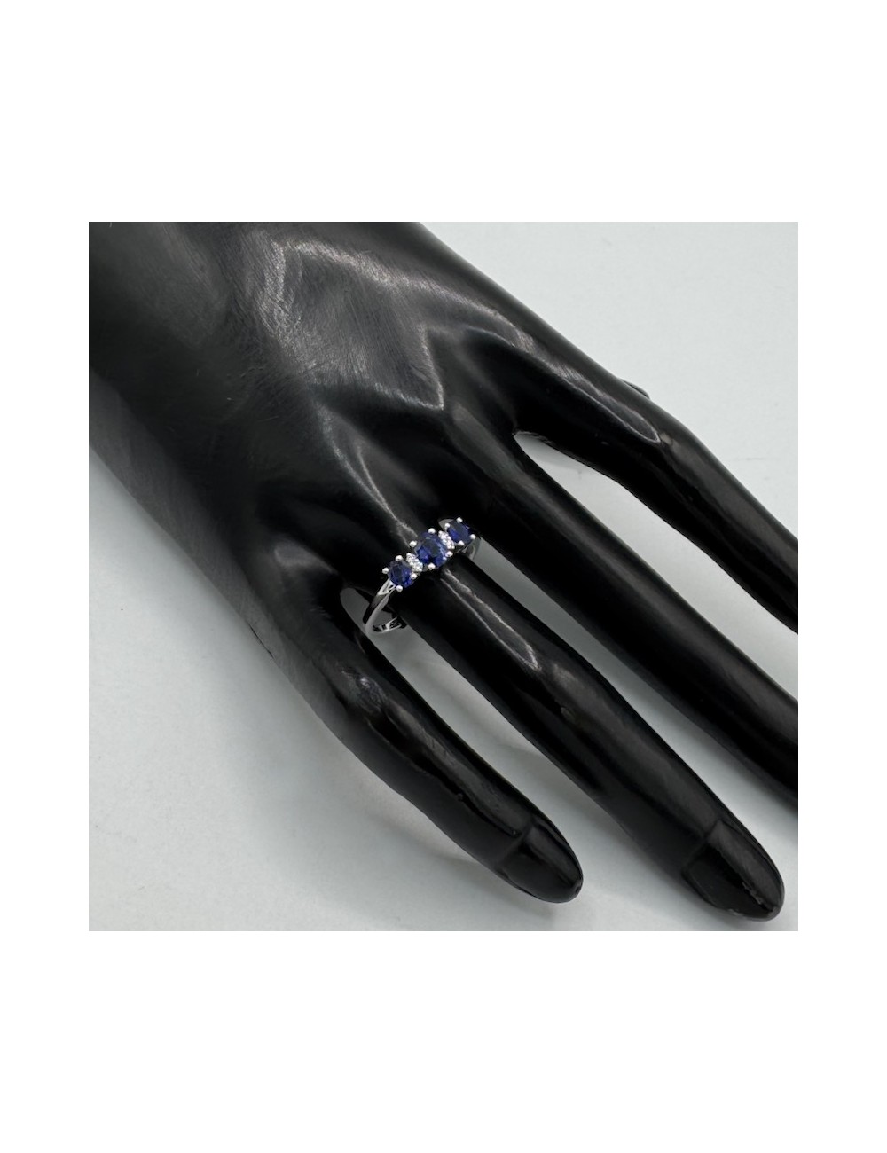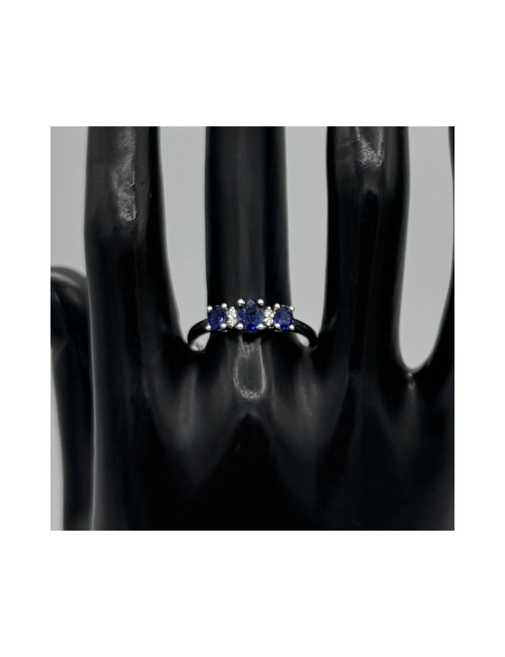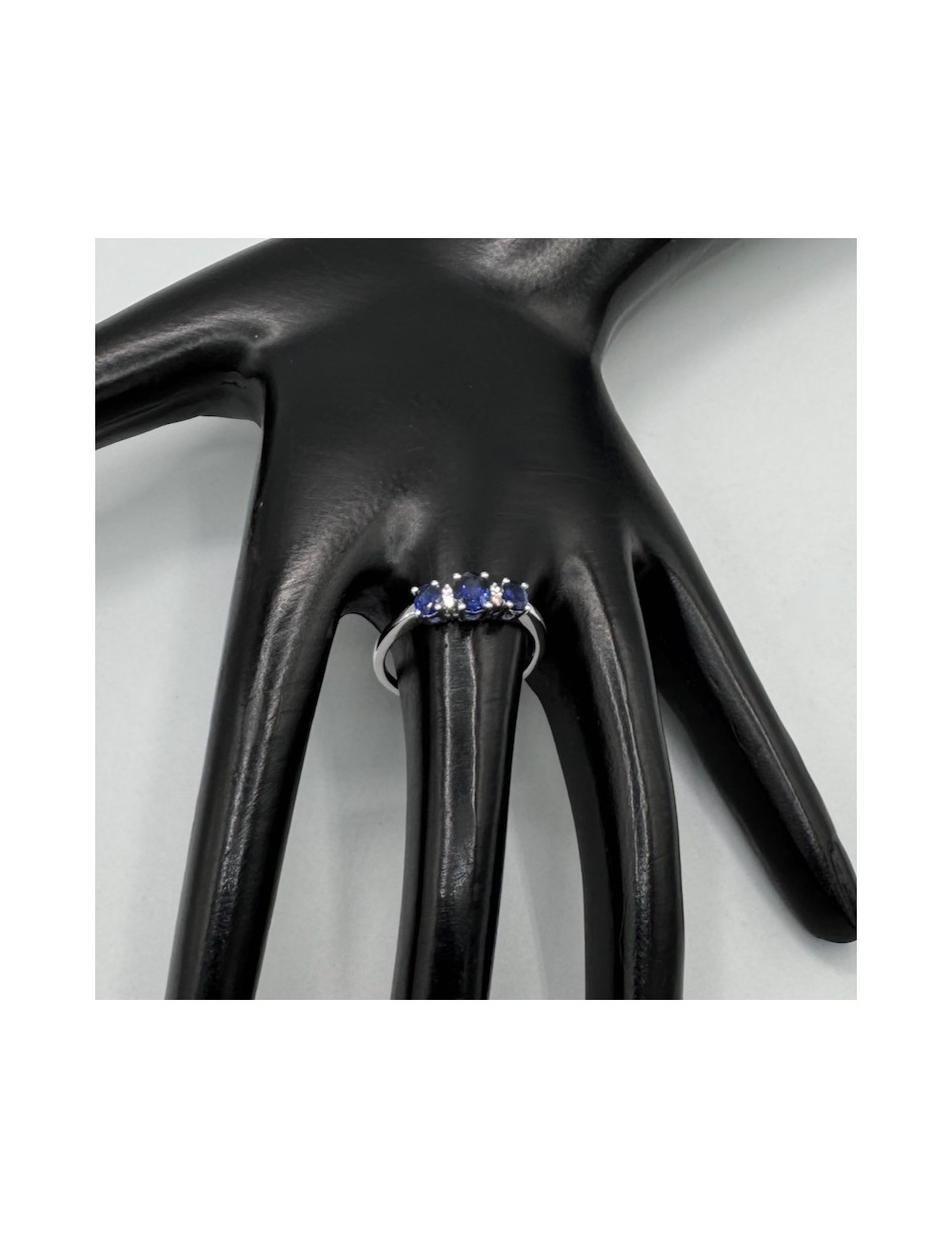 -Oro bianco con n.3 Zaffiri blu naturali ct.0,75 e Diamanti taglio Brillante F color ct.0,03.1370€