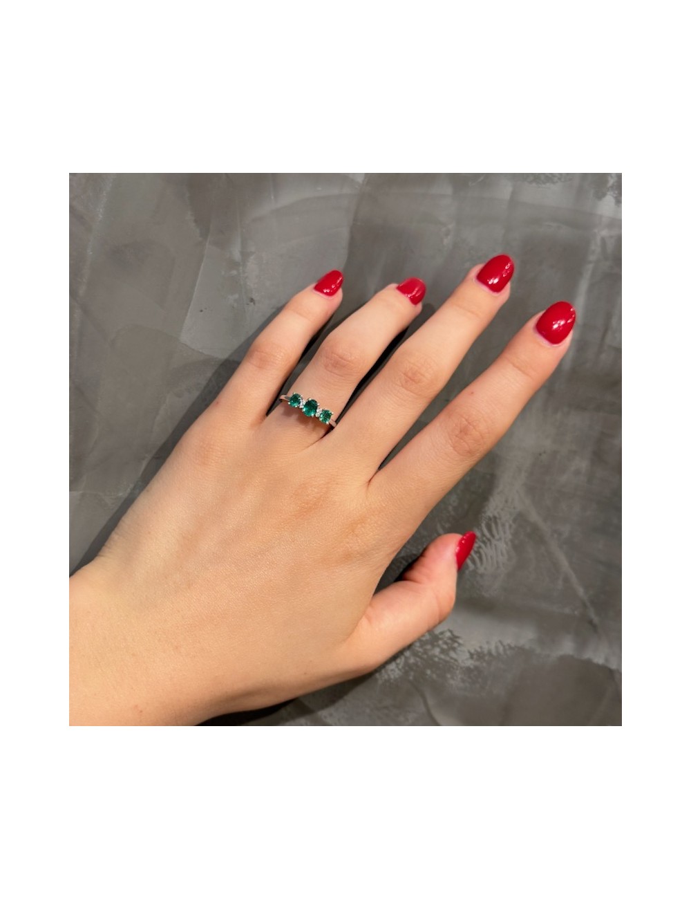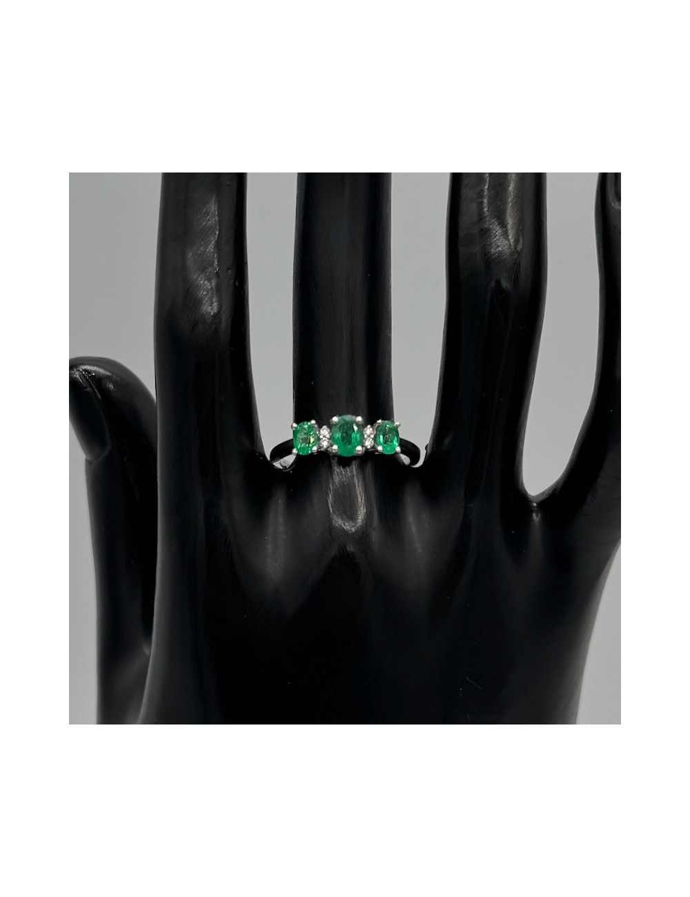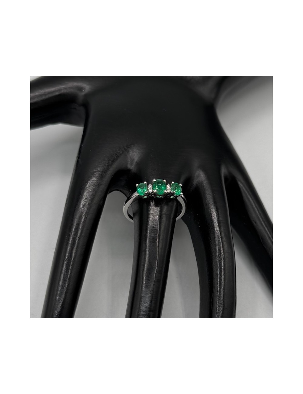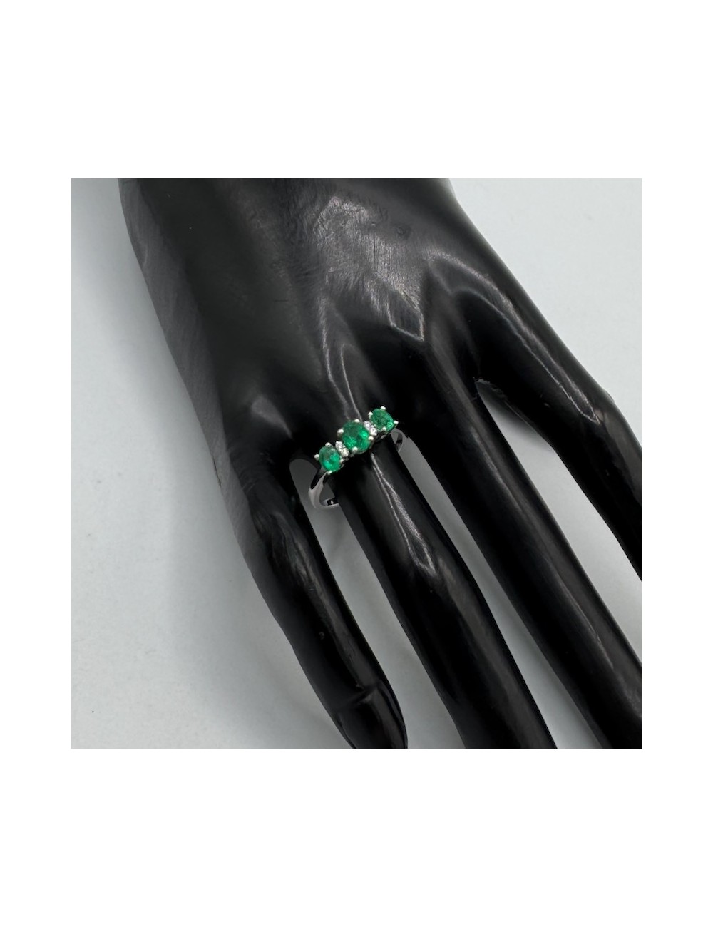-Oro bianco con n.3 Smeraldi naturali ct.0,75 e Diamanti taglio Brillante F color ct.0,03.1720€