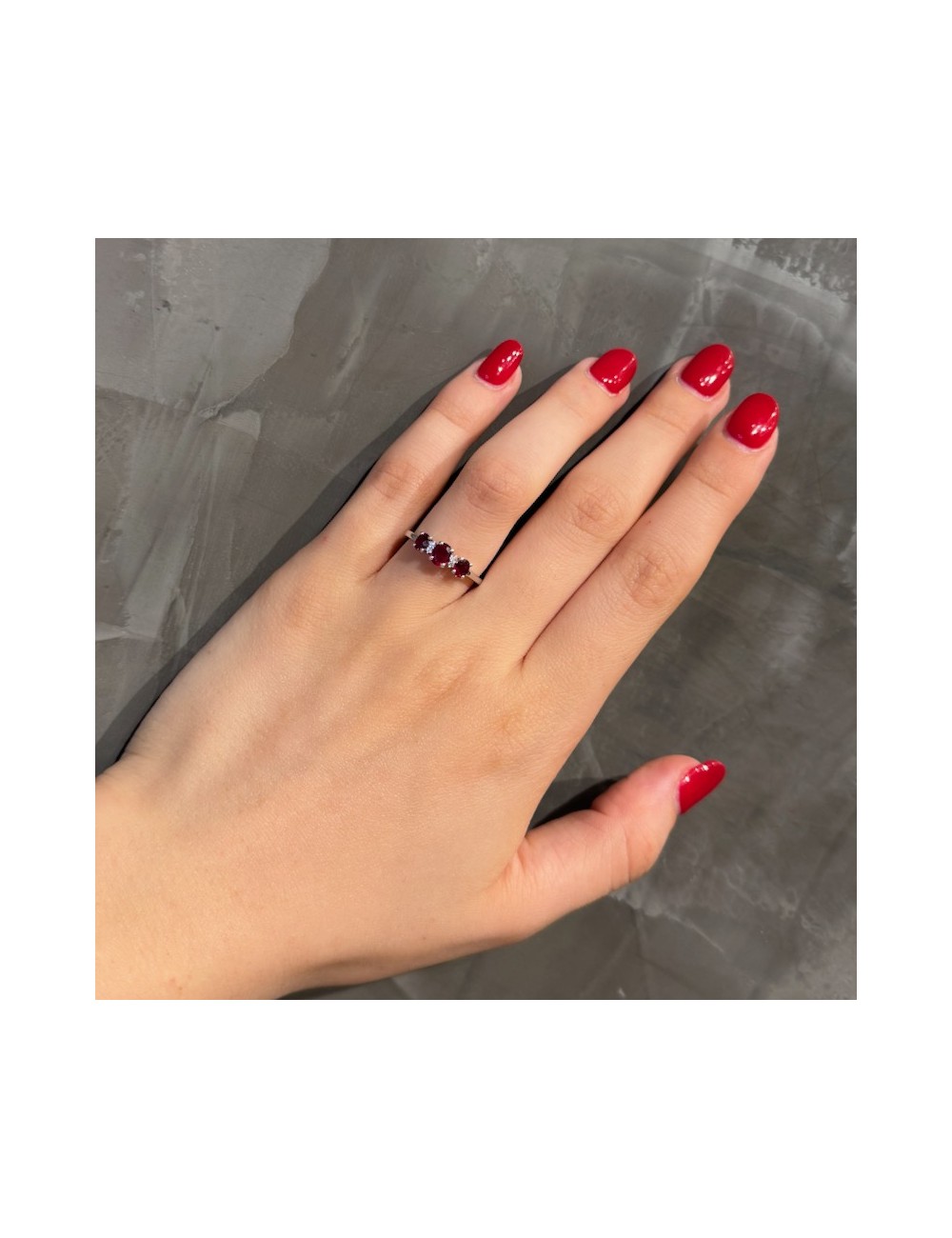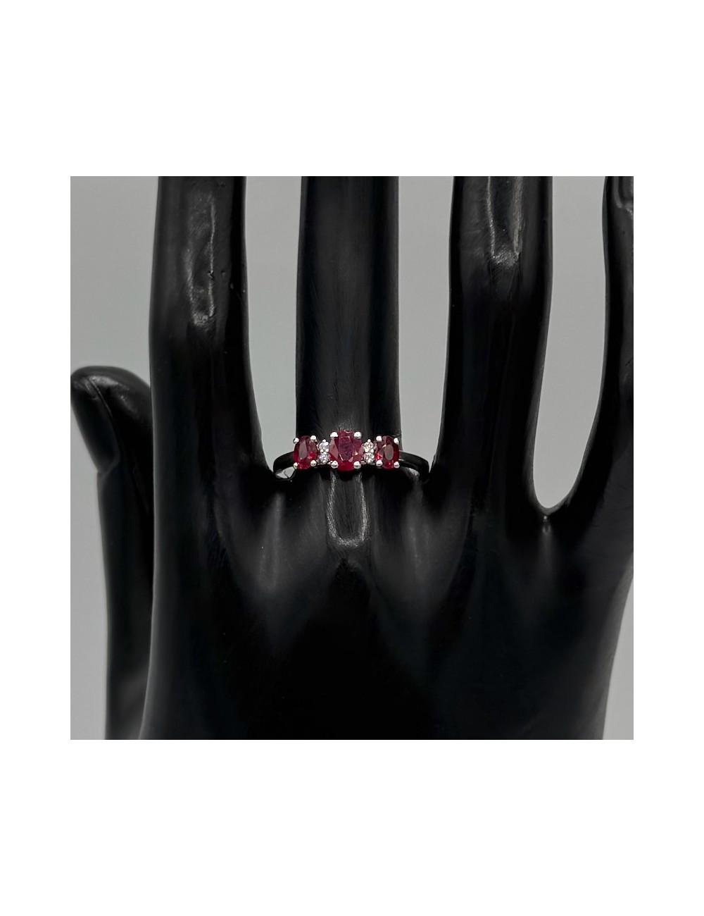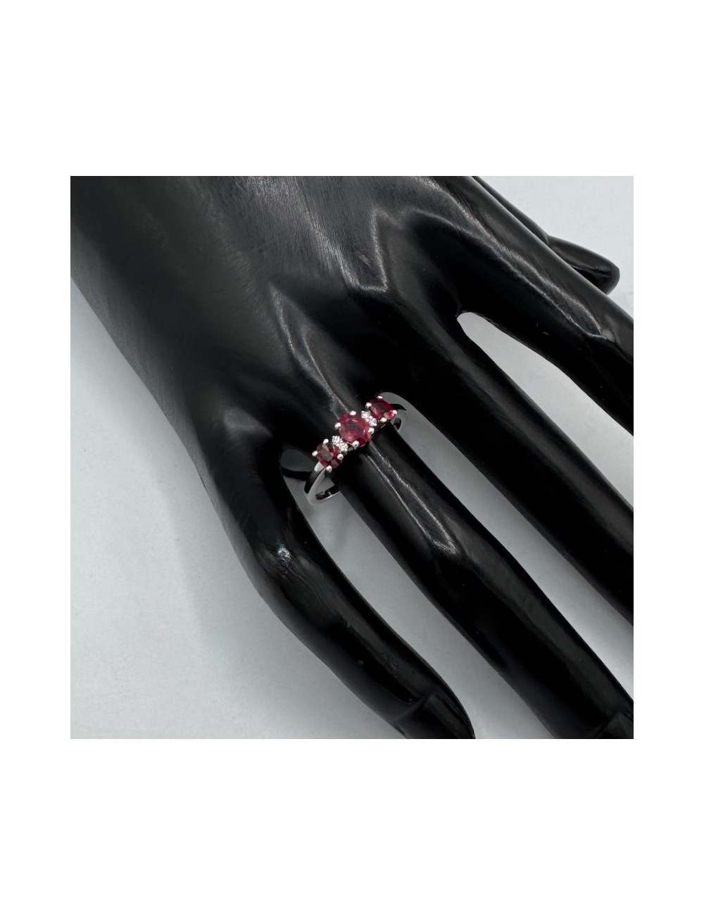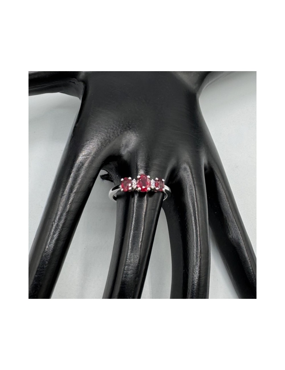 -Oro bianco con n.3 Rubini naturali ct.0,90 e Diamanti taglio Brillante F color ct.0,03.1670€