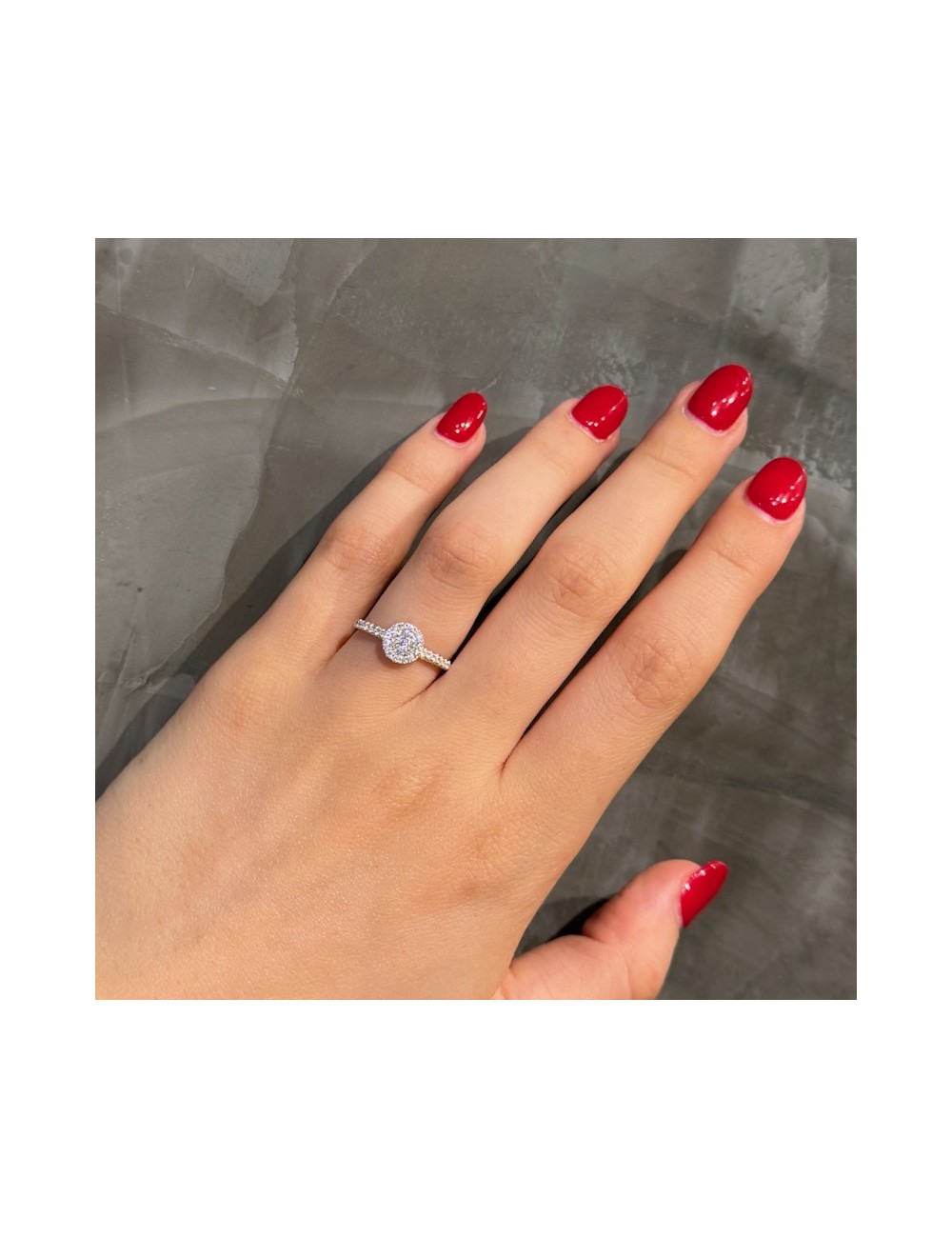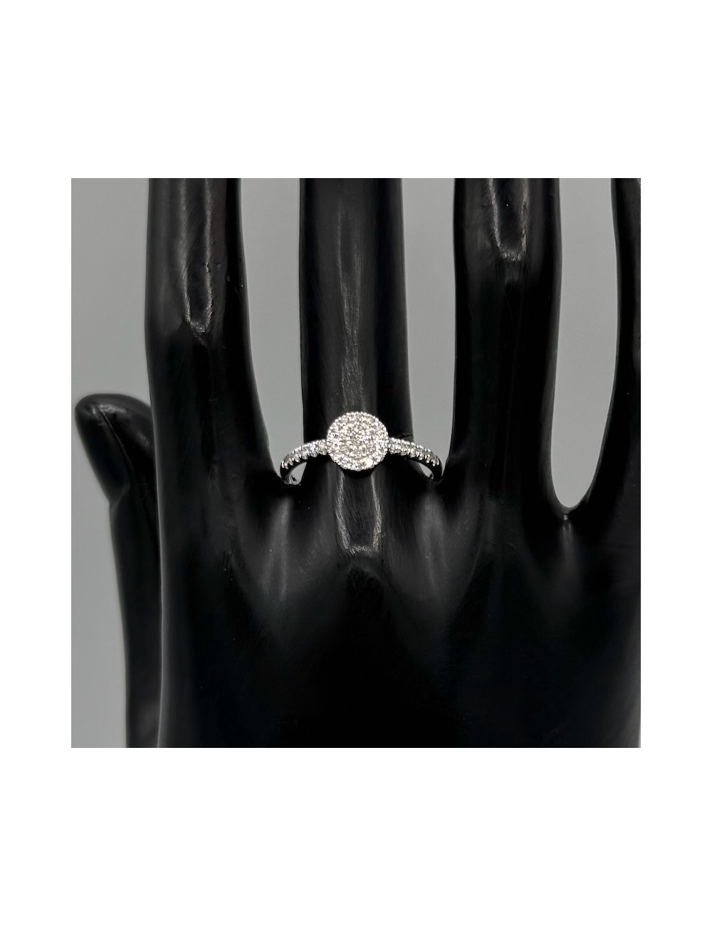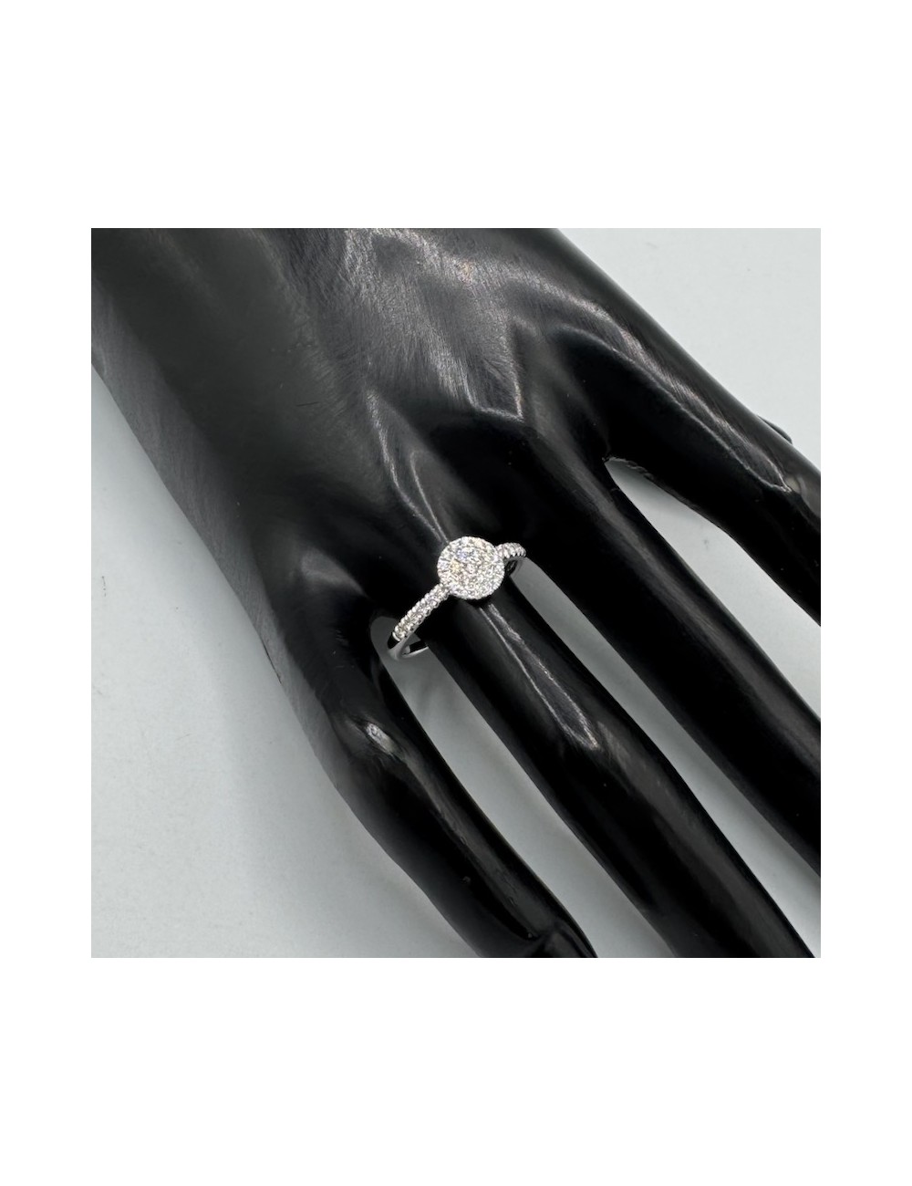 Anello in oro bianco con Diamanti incassati in modo "invisibile" che restituisce grande luminosità.