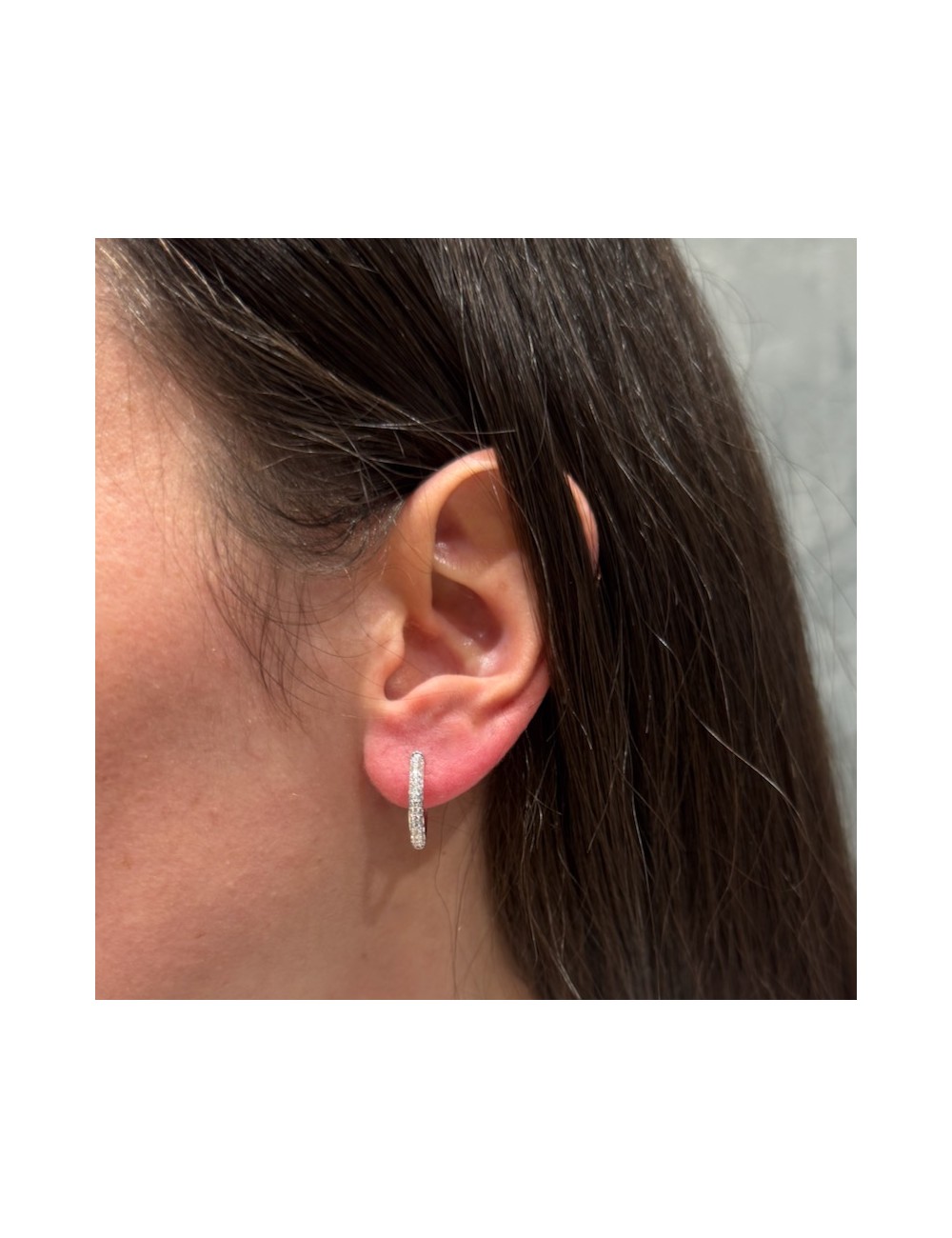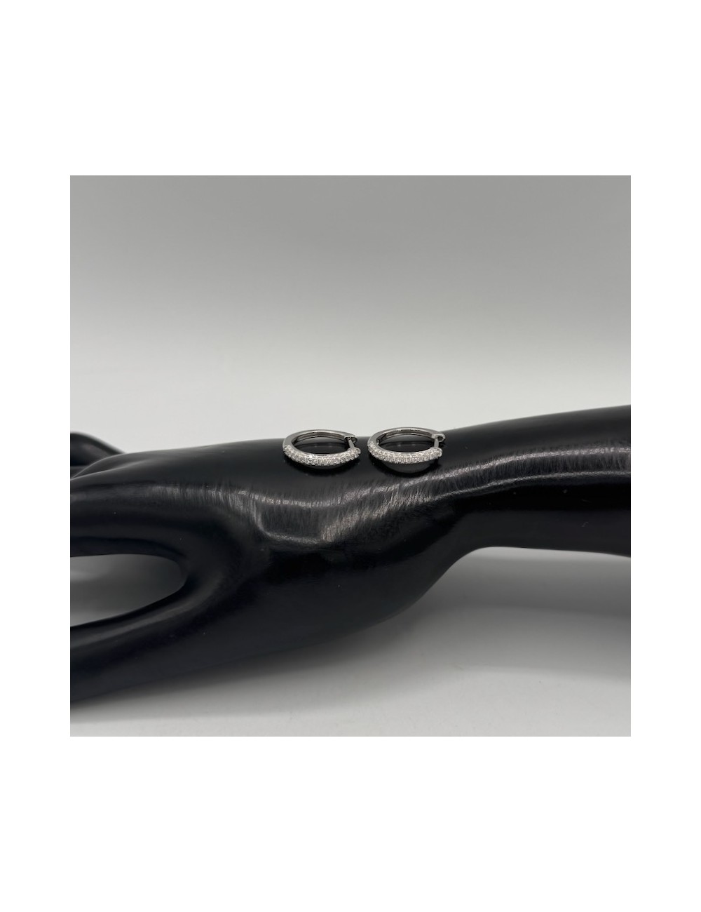 Orecchini in oro bianco modello "cerchio medio" Giorgio Visconti.Incassatura "a pavè" che restituisce grande luminosità.