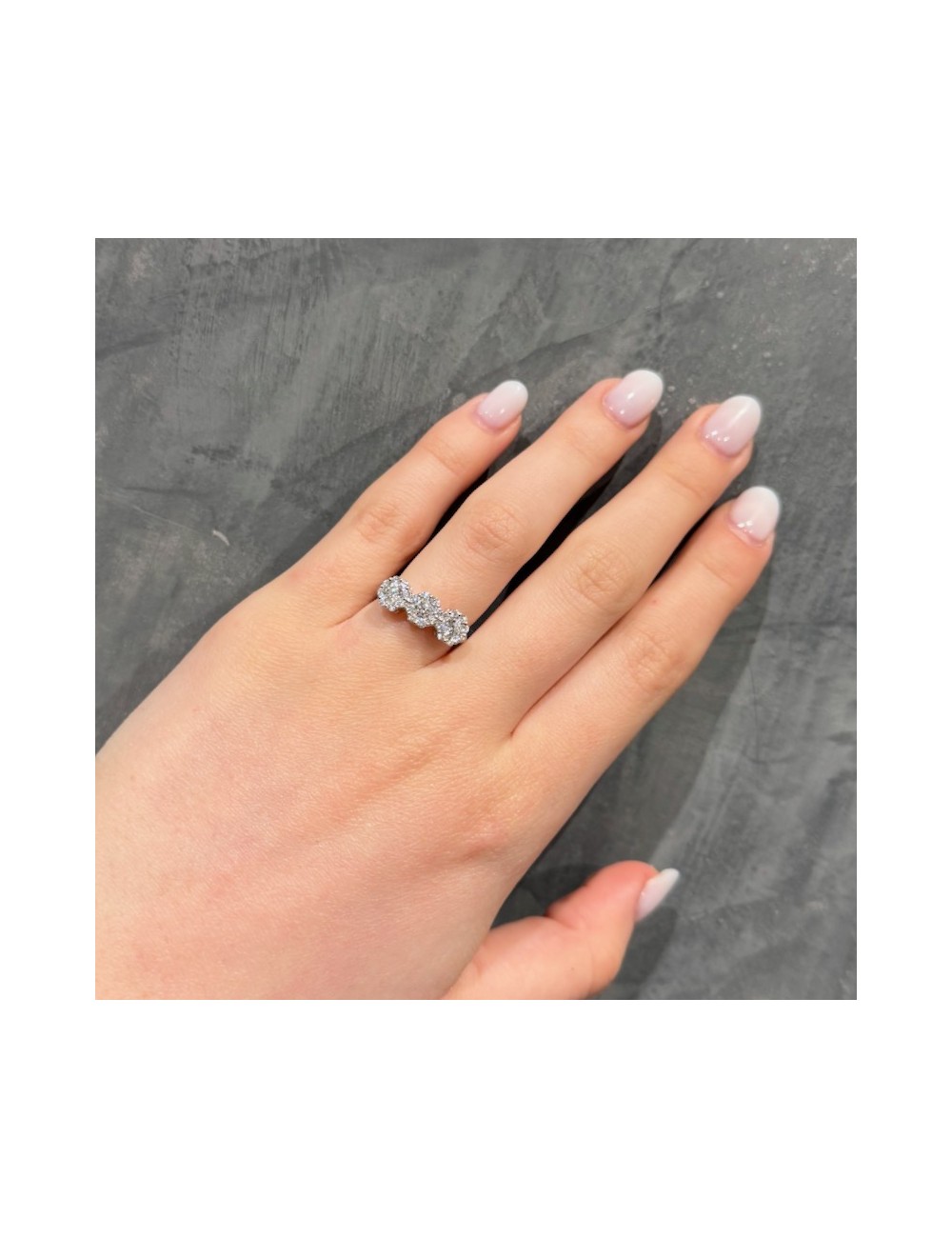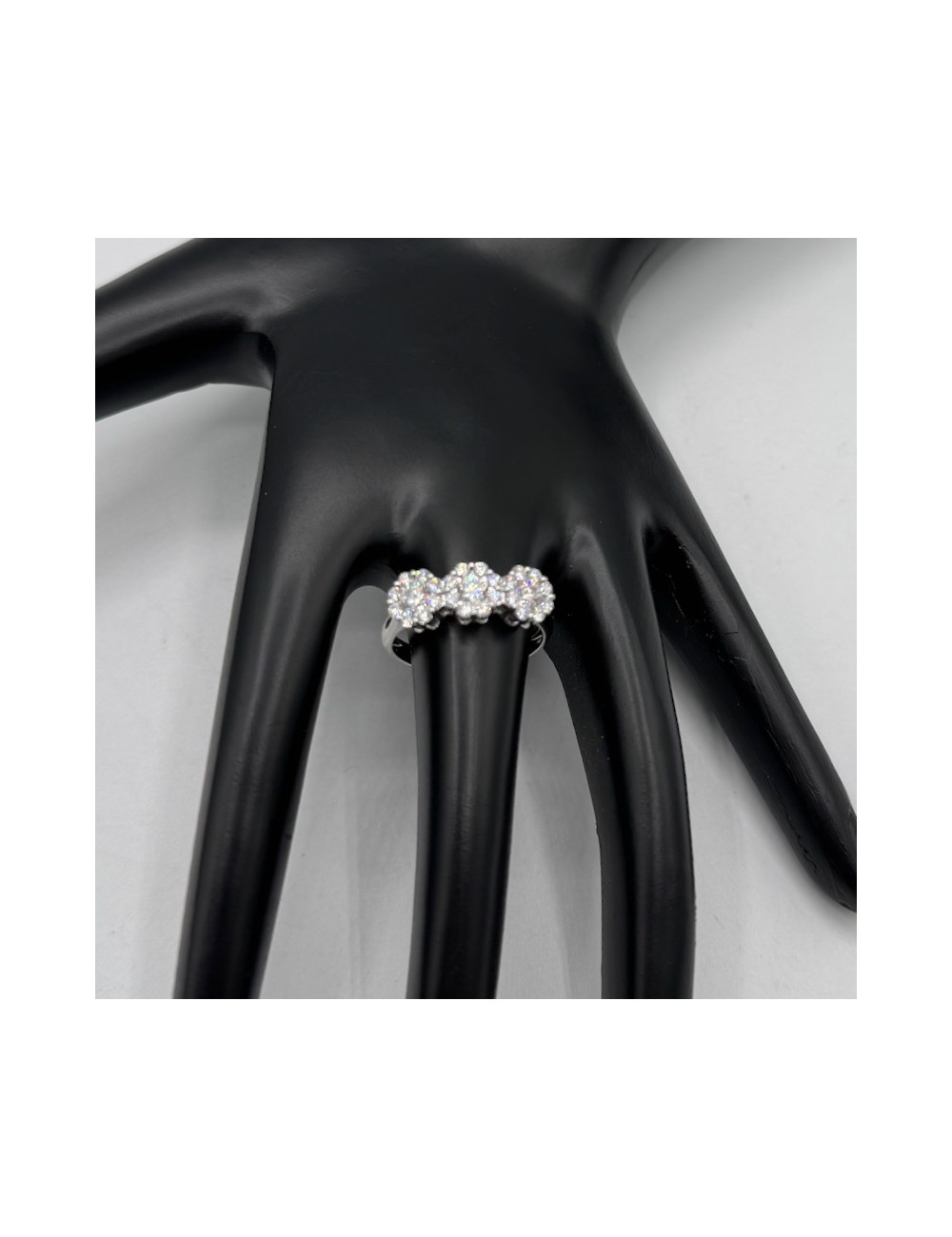 Anello in oro bianco modello "Trilogy" magic con incassatura invisibile che restituisce grande luminosità.