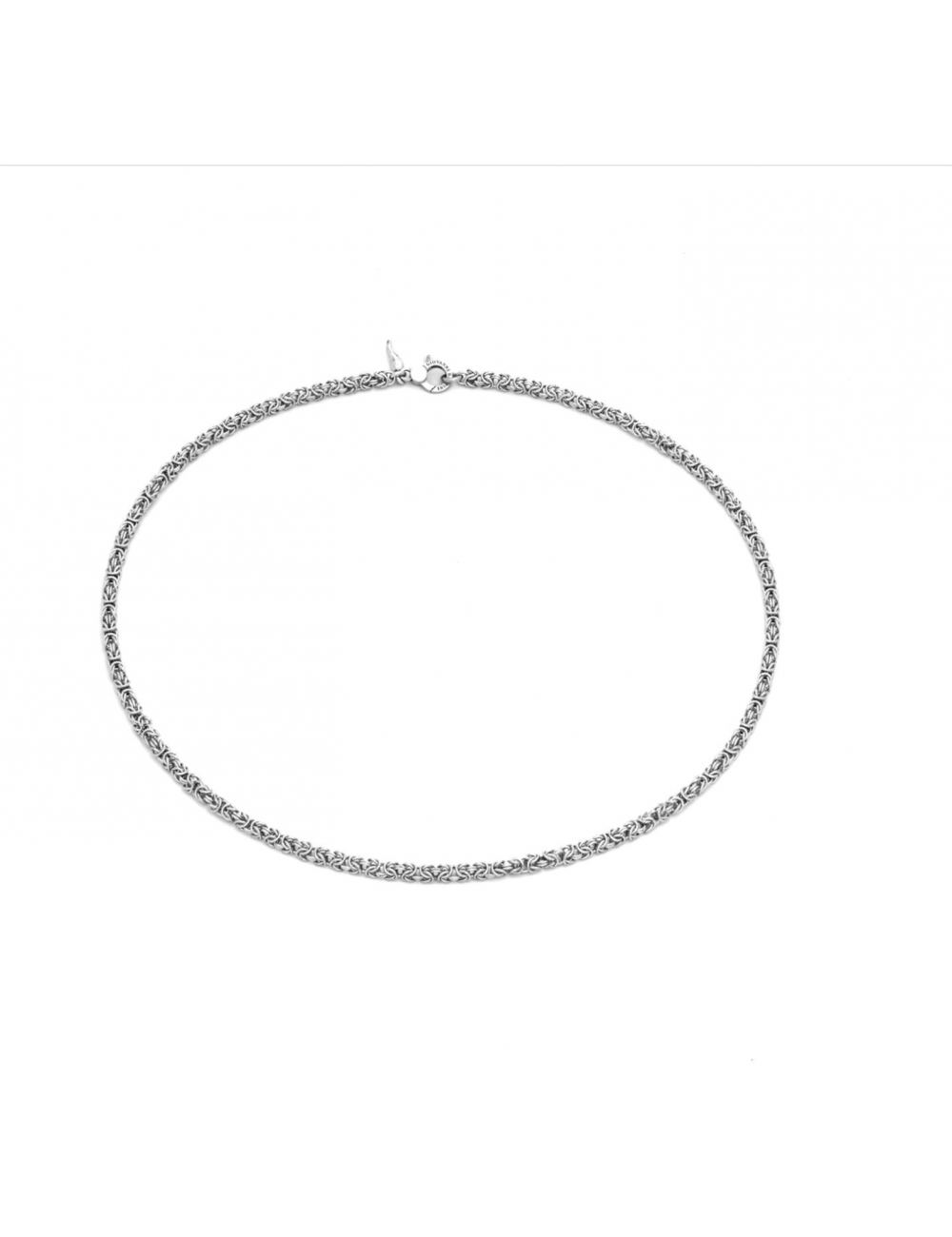 Da sempre best seller del brand, diventa preziosa collana in argento una catena che ha fatto la storia della gioielleria. E' la maglia bizantina in versione mini mini, lavorata artigianalmente, col suo particolarissimo ed elegante intreccio. Un gioiello estremamente versatile che si presta ad un indosso sia maschile che femminile.