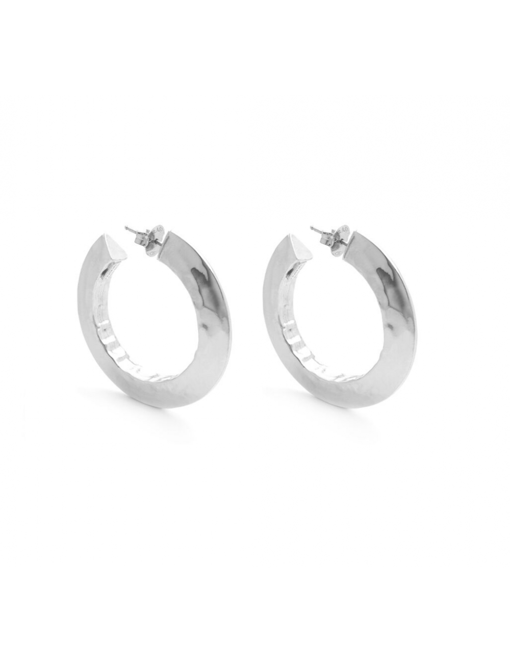 Gli orecchini a cerchio Blade esprimono il connubio ideale tra forza e contemporaneità nello stile Giovanni Raspini: l'argento martellato, ultra luminoso, incontra l'eleganza di forme decise, per chi ama un gioiello di forte personalità e dal segno essenziale
