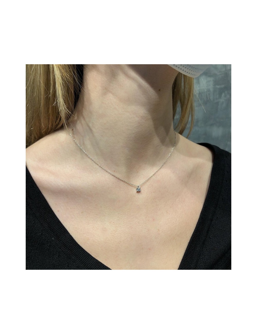 Girocollino in oro bianco modello "punto luce"