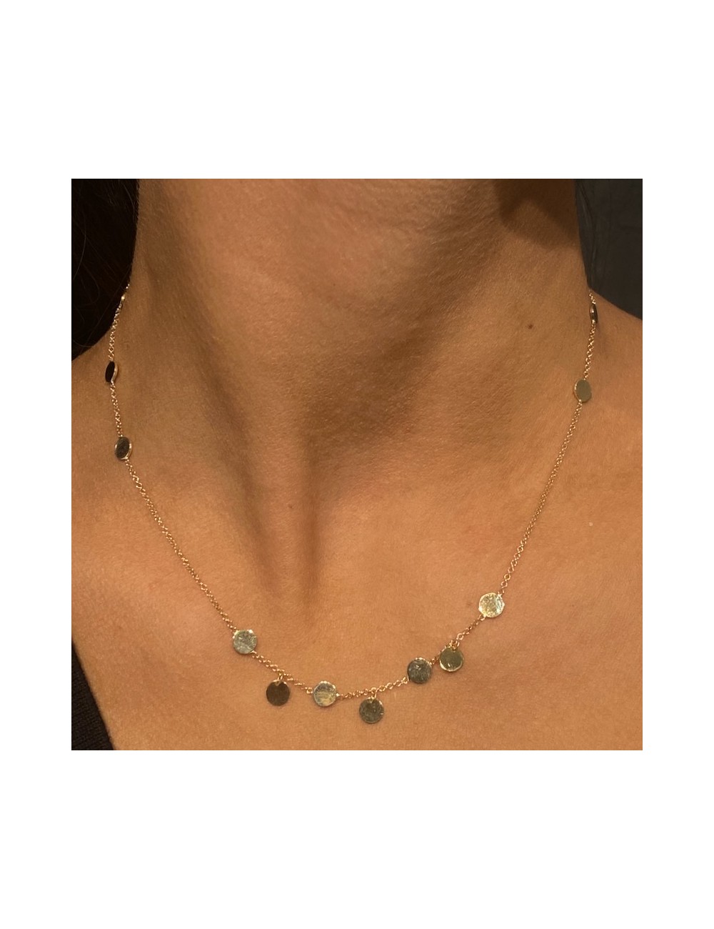 Girocollino in oro giallo con dischetti posizionati irregolarmente