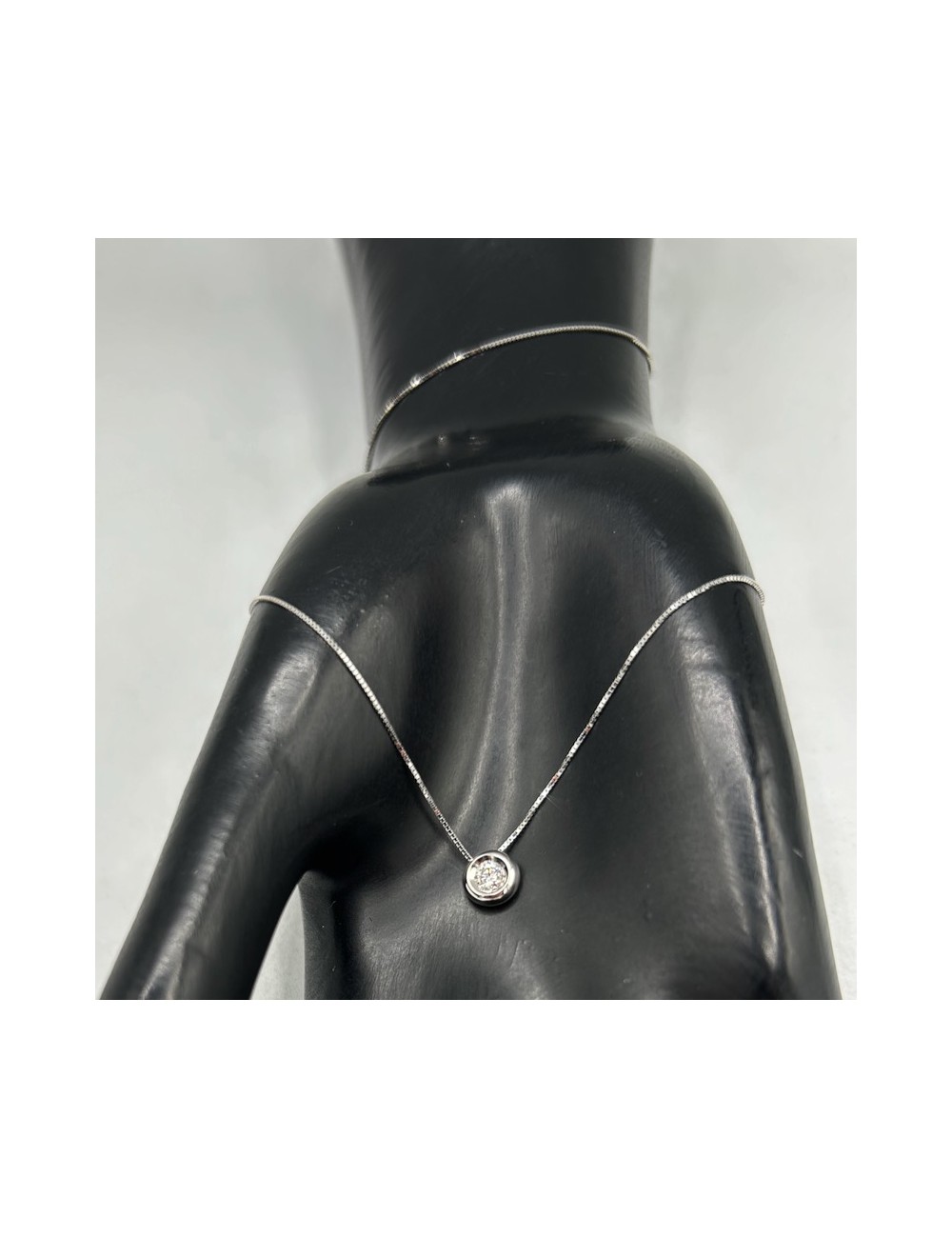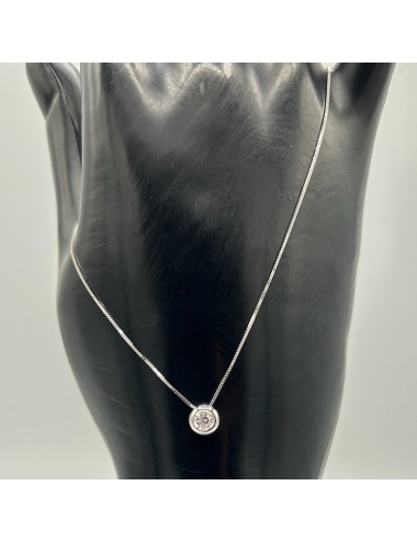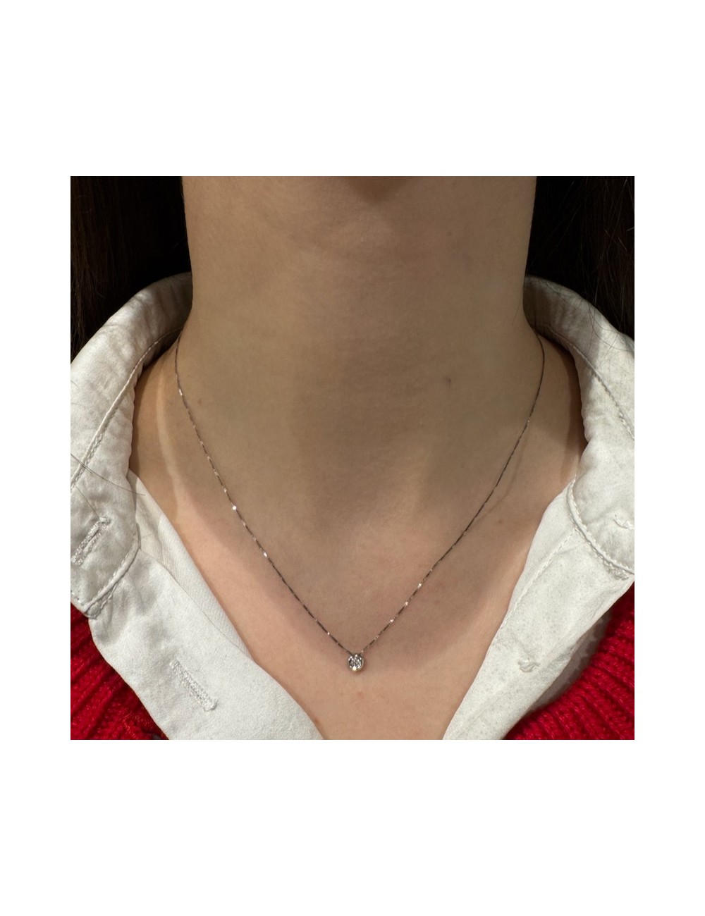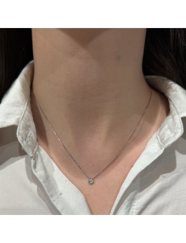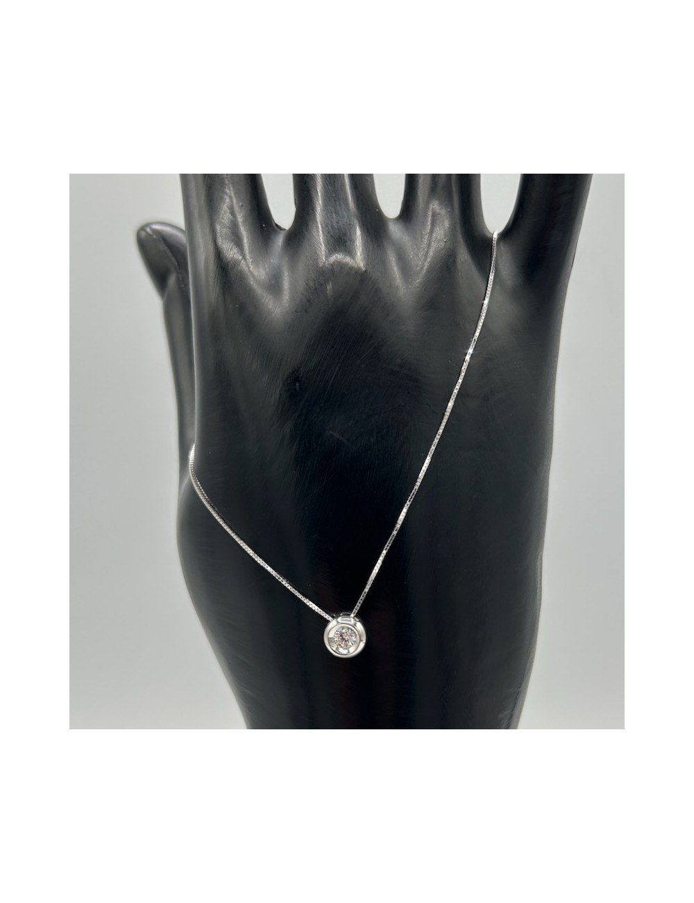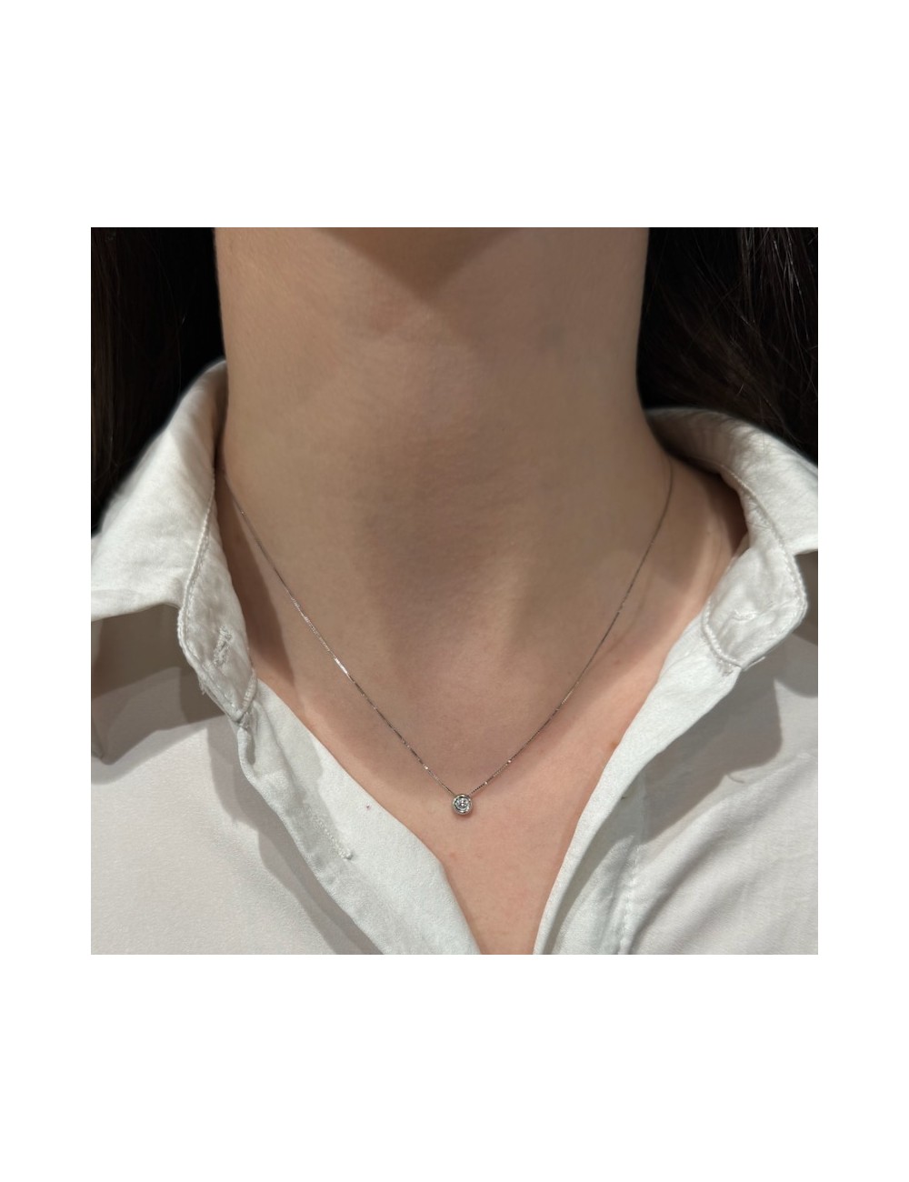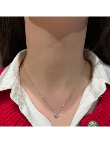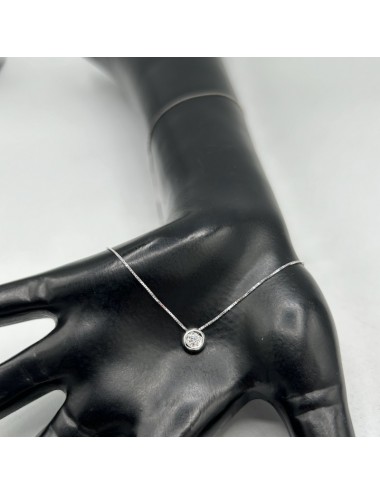 Girocollino in oro bianco modello "punto luce" con maglia "rolò sottile".