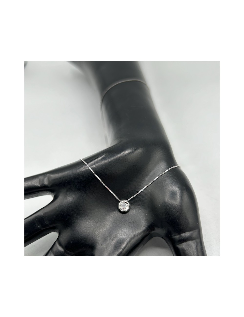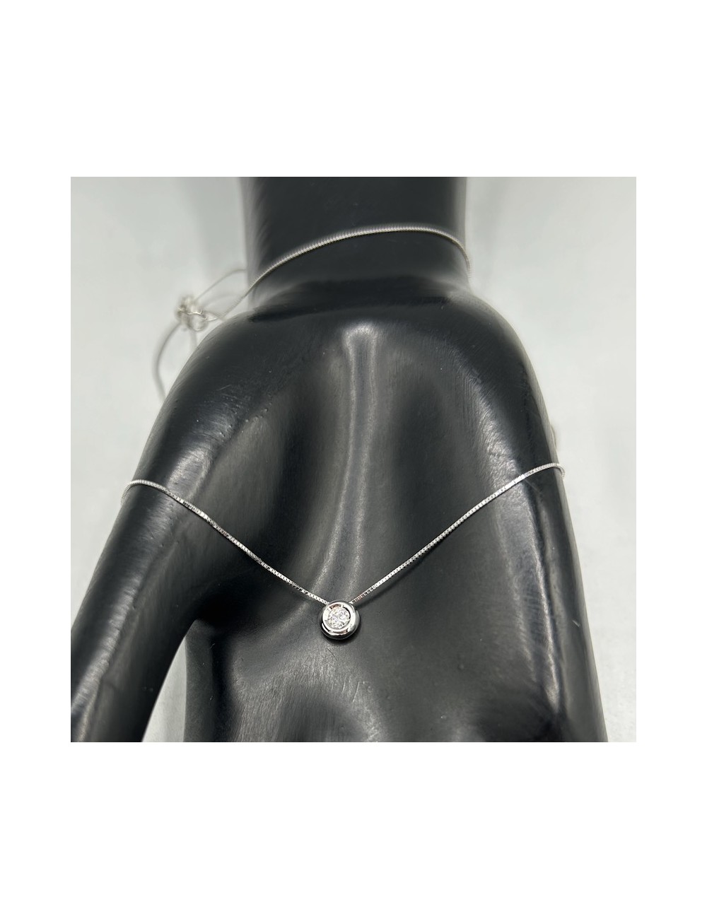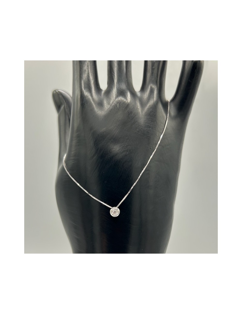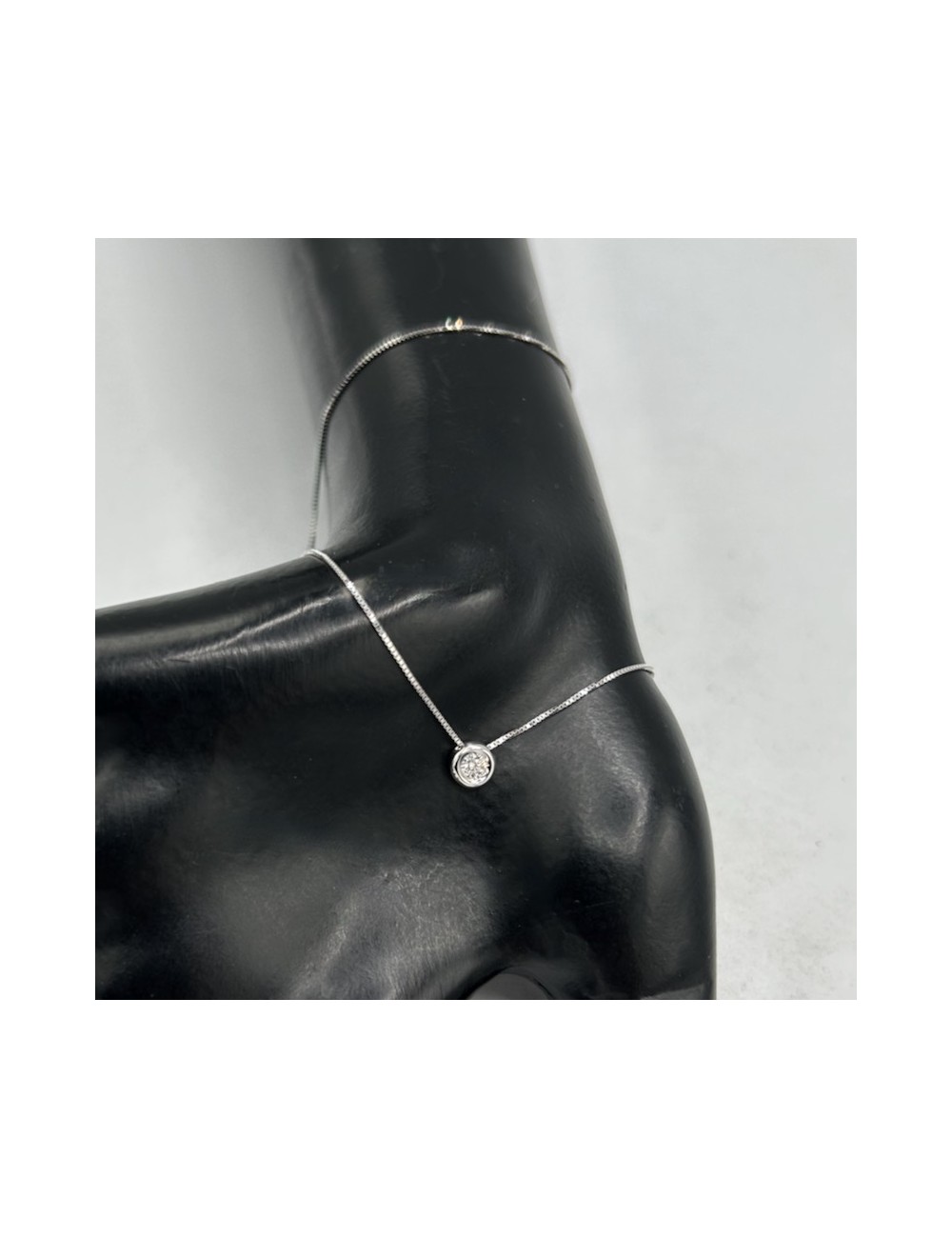 Girocollino in oro bianco modello "punto luce" con maglia "rolò sottile".