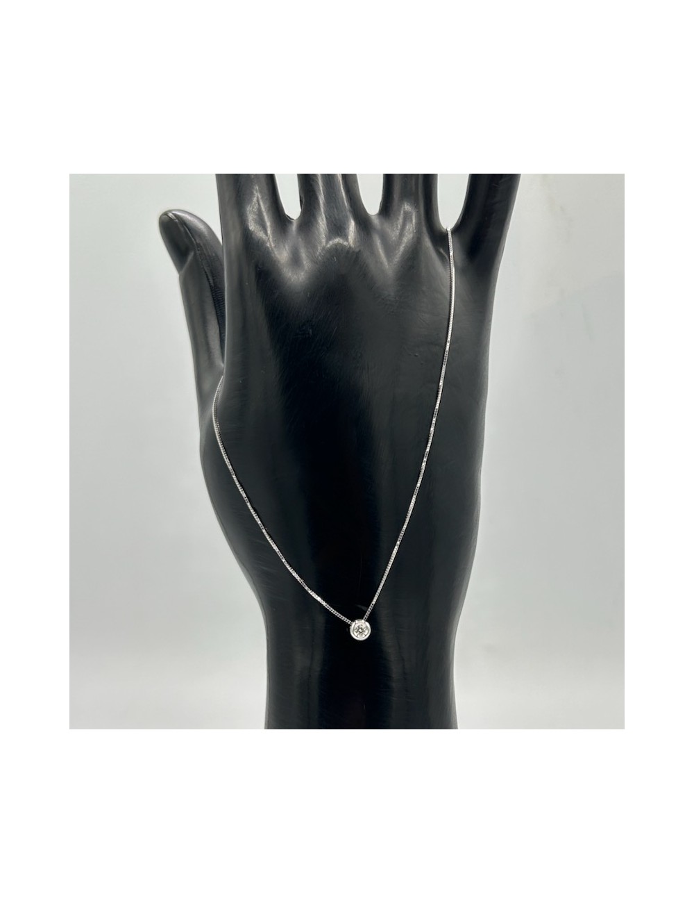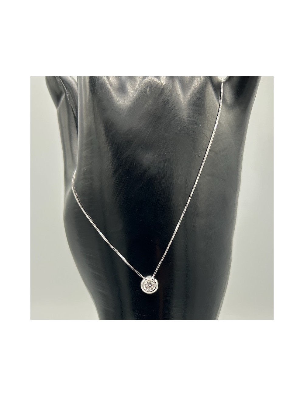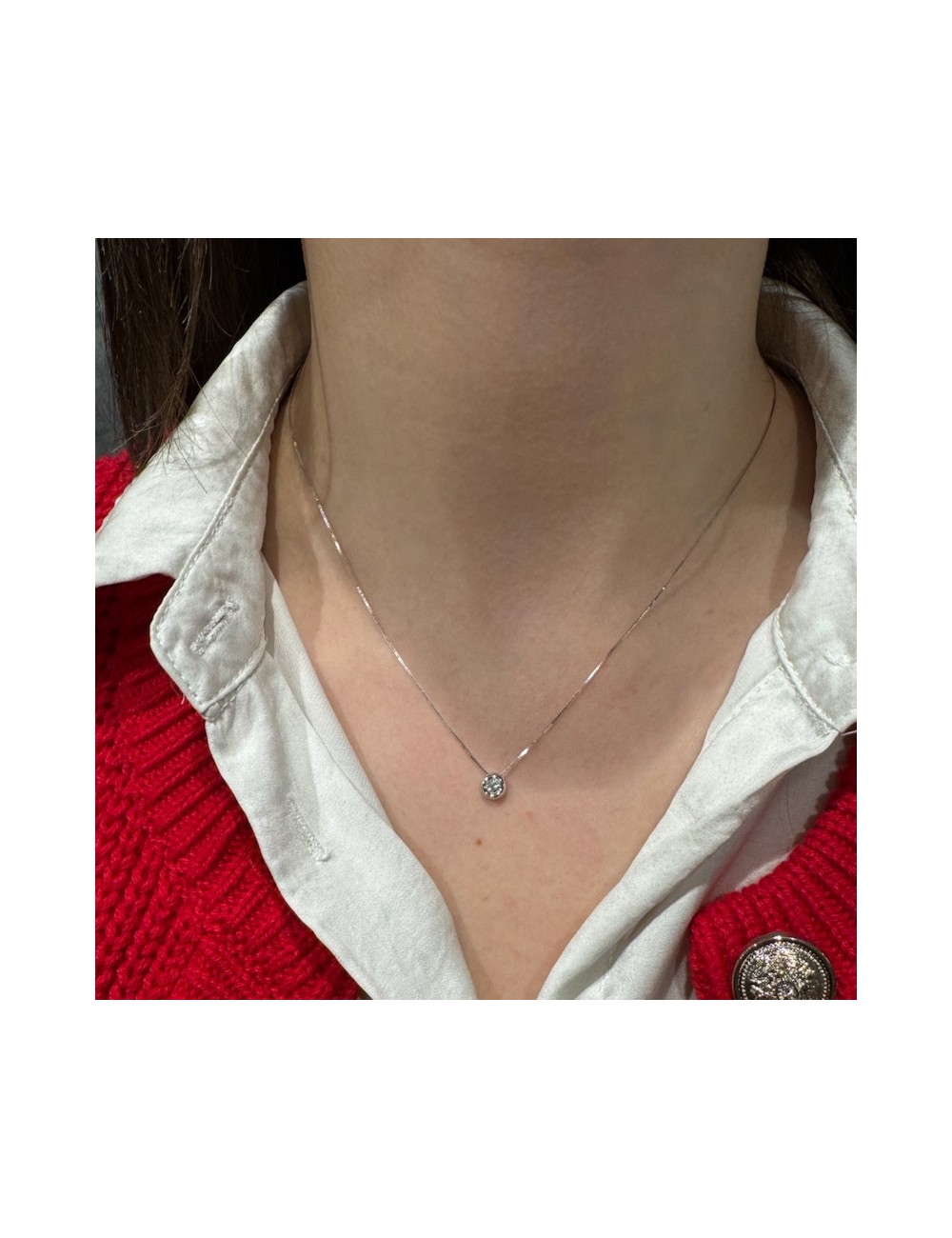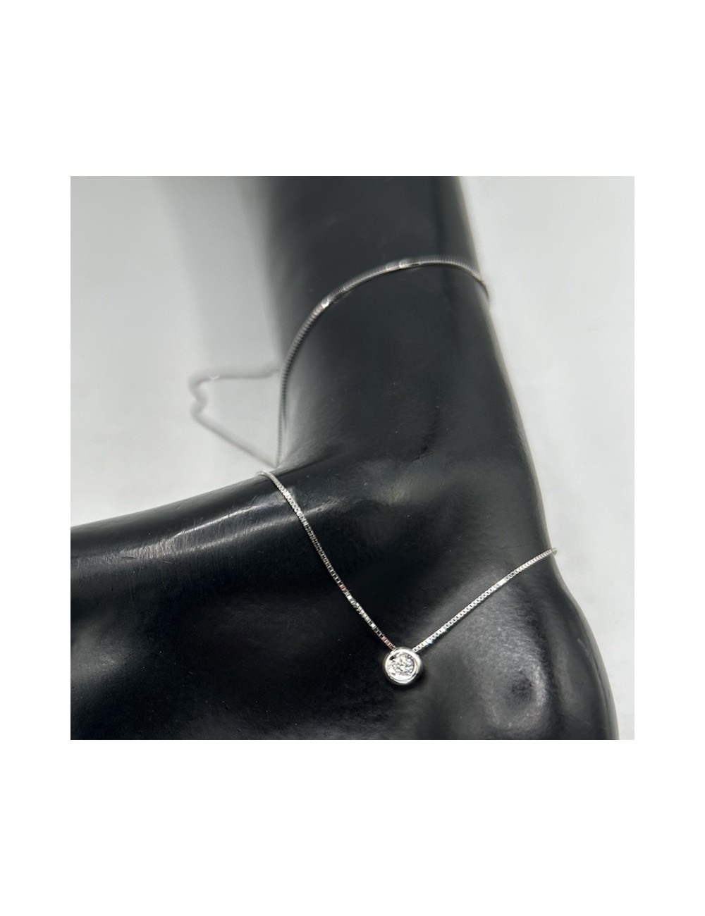Girocollino in oro bianco modello "punto luce" con maglia "rolò sottile".