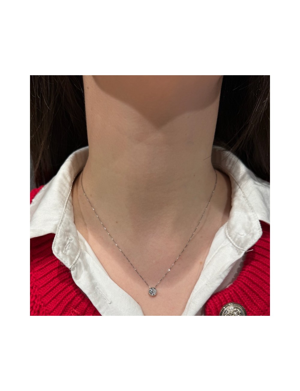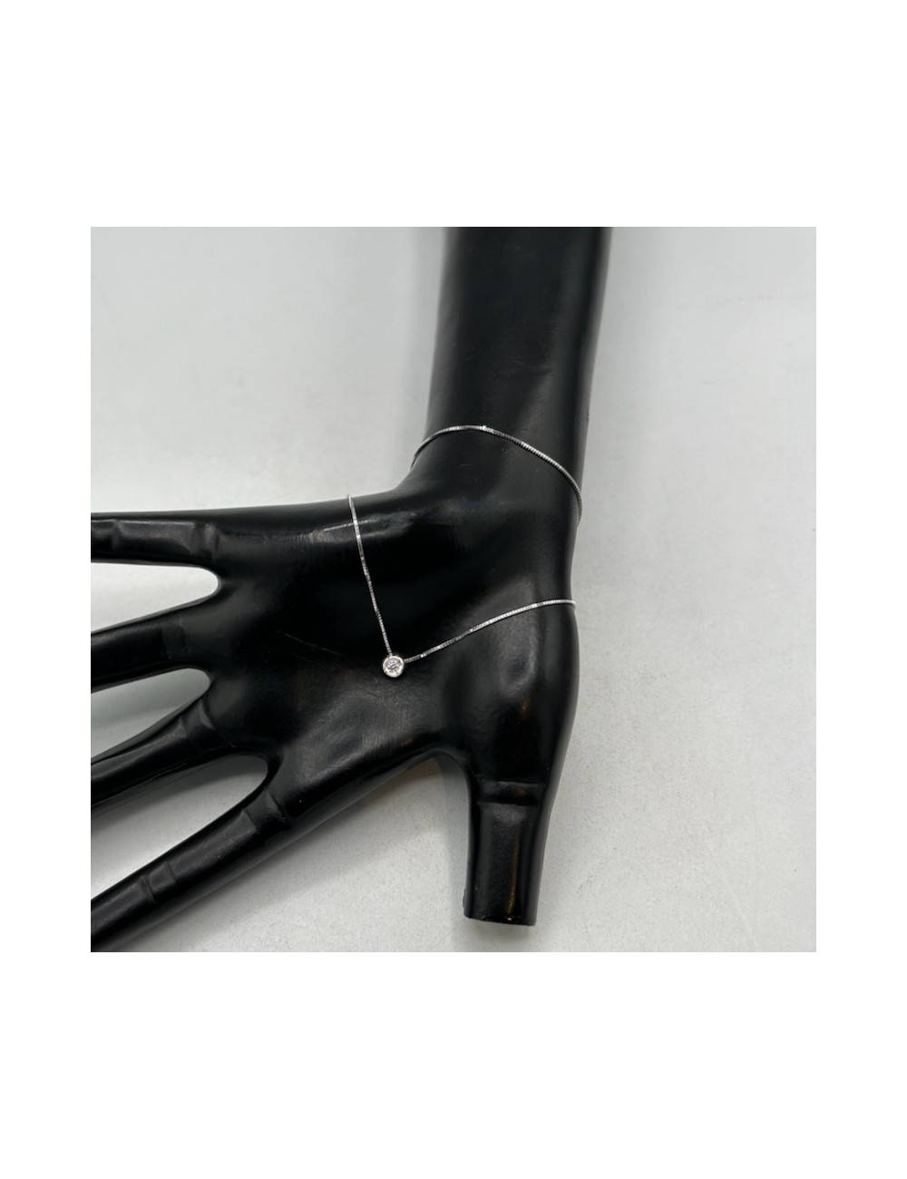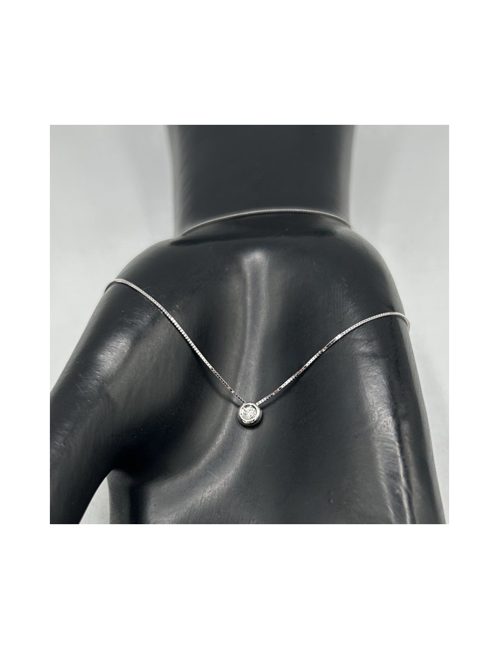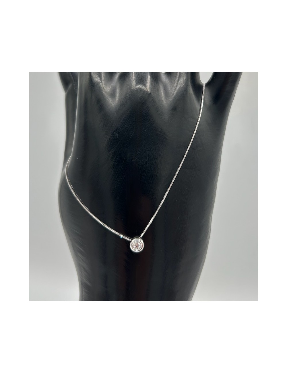 Girocollino in oro bianco modello "punto luce" con maglia "rolò sottile".