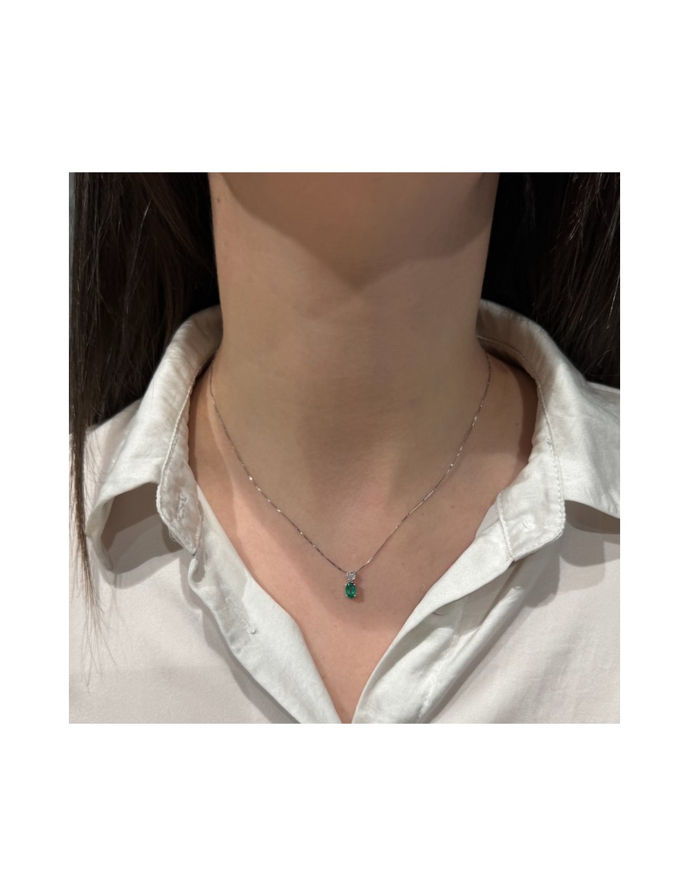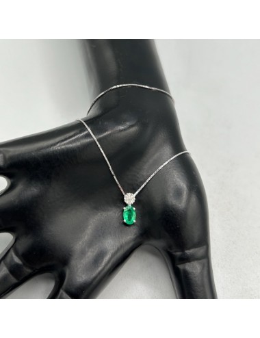 Girocollino in oro bianco con Smeraldo e Diamanti