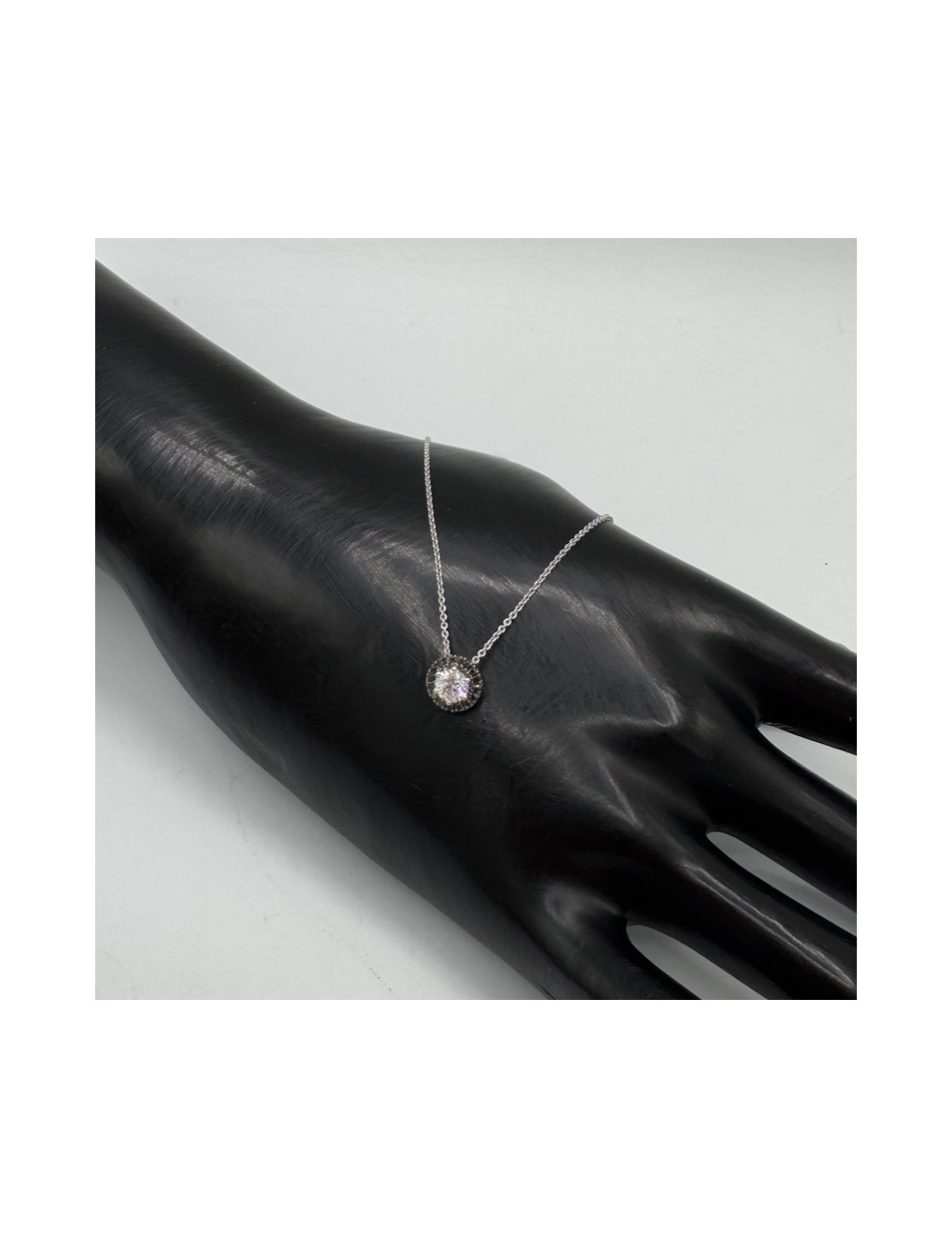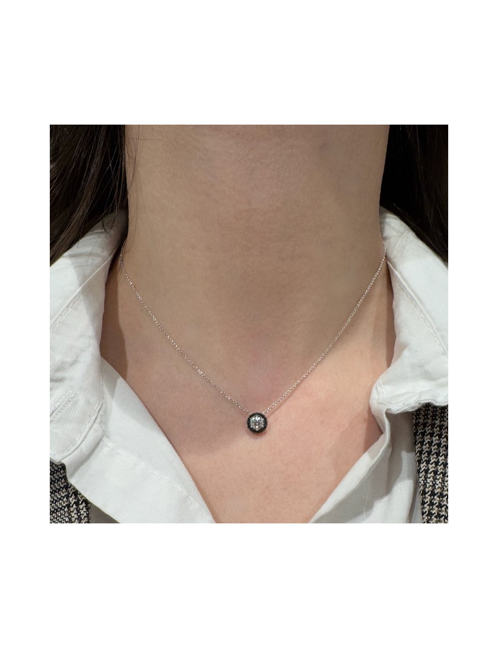 Centrale con Diamanti bianchi taglio Brillante,G color,ct.0,32.Contorno esterno in Diamanti neri top quality ct.0,06.