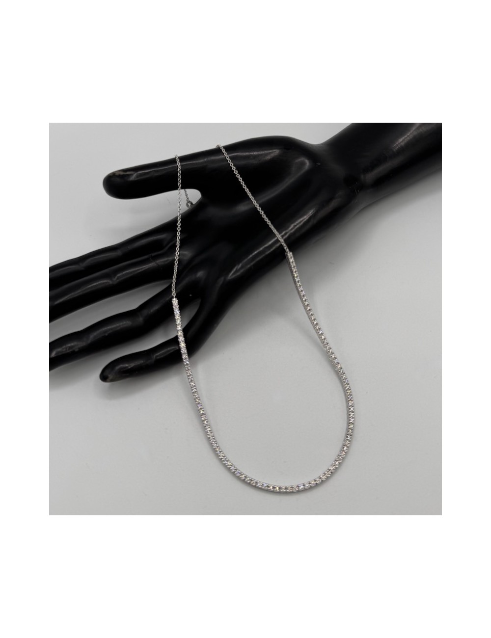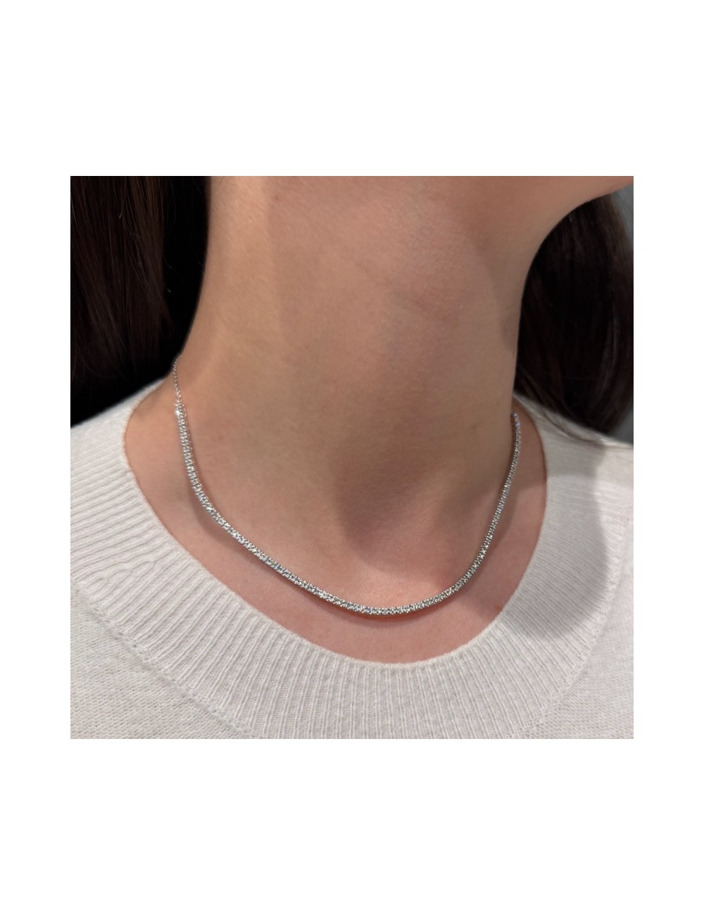 Girocollo in oro bianco modello "mezzo tennis".