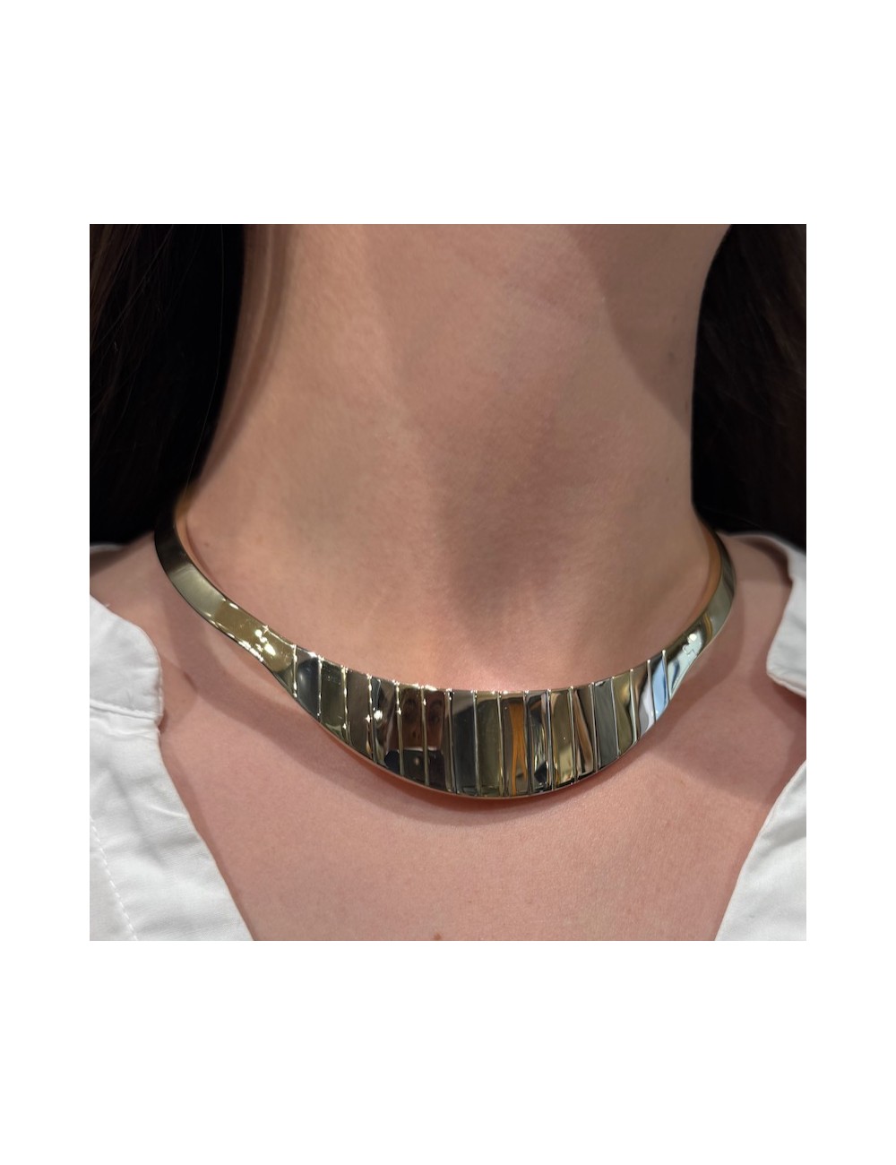 Collier rigido in oro giallo con parte centrale a 3 ori.