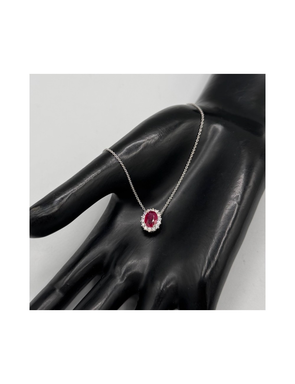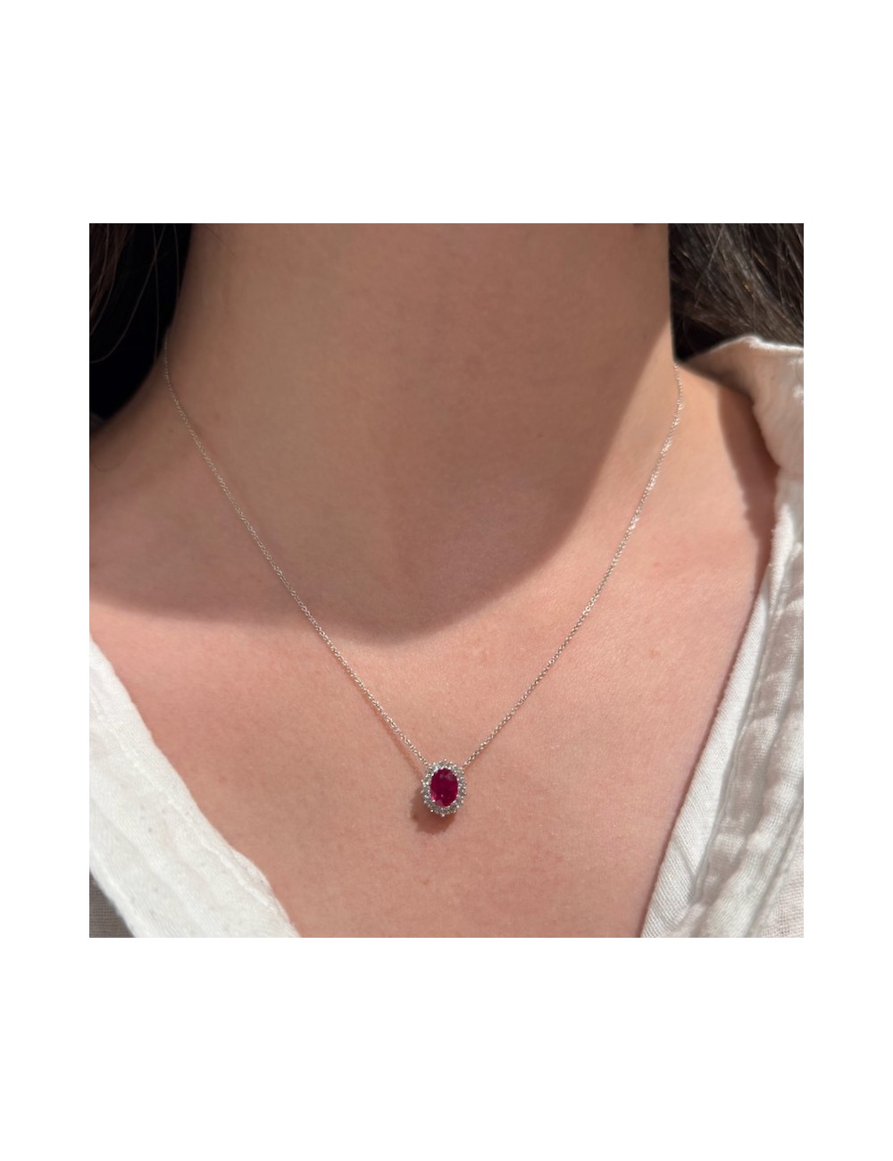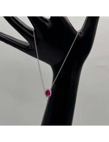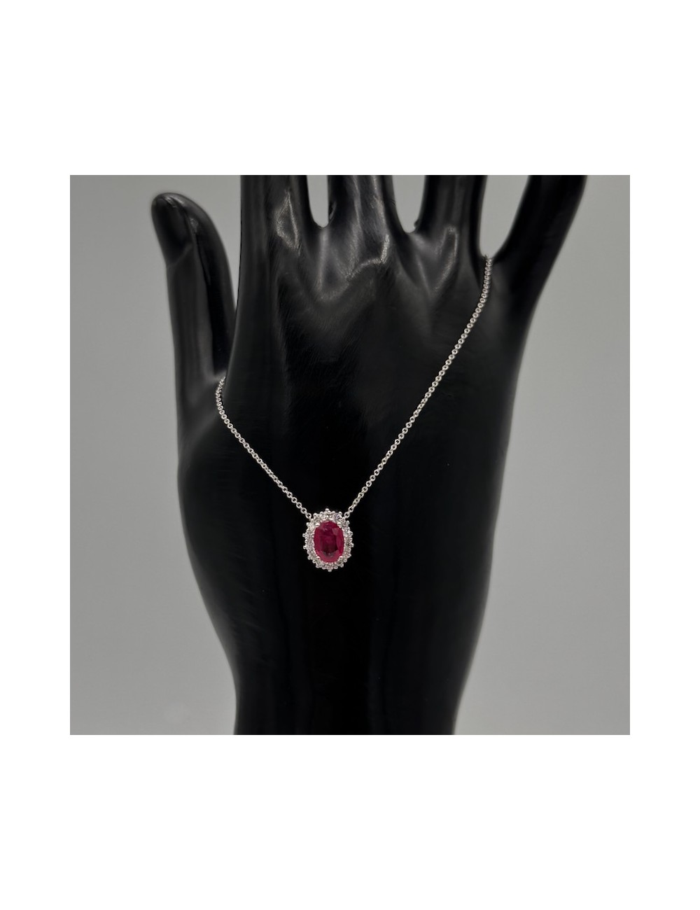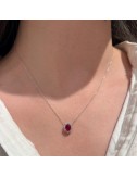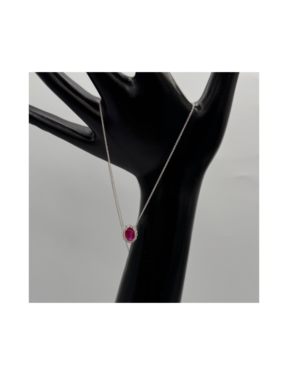 Girocollino in oro bianco modello "Kate" con Rubino naturale,Zaffiro blu naturale e contorno di Diamanti F color ct.0,25.