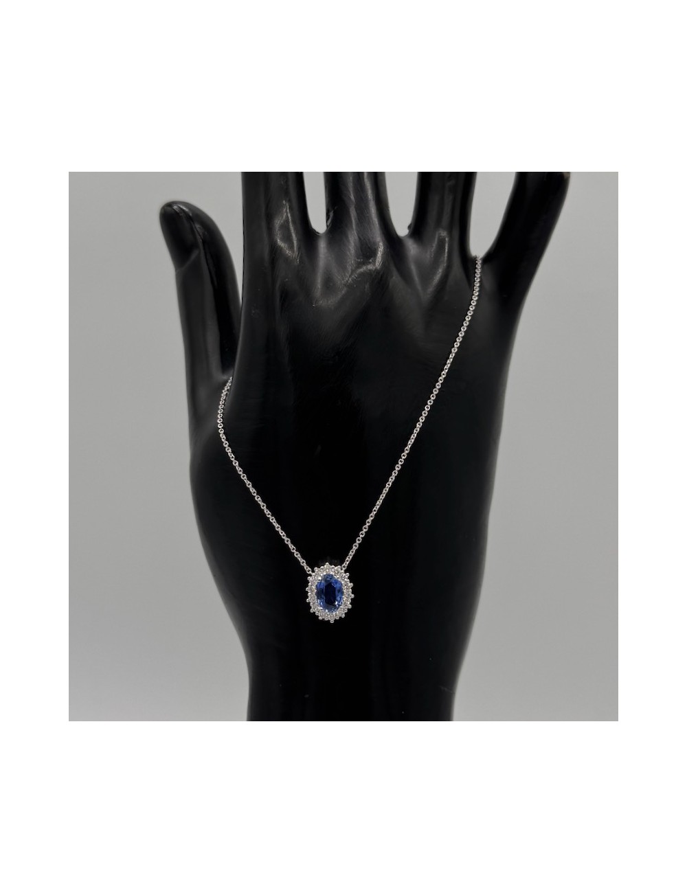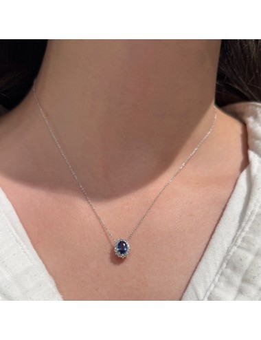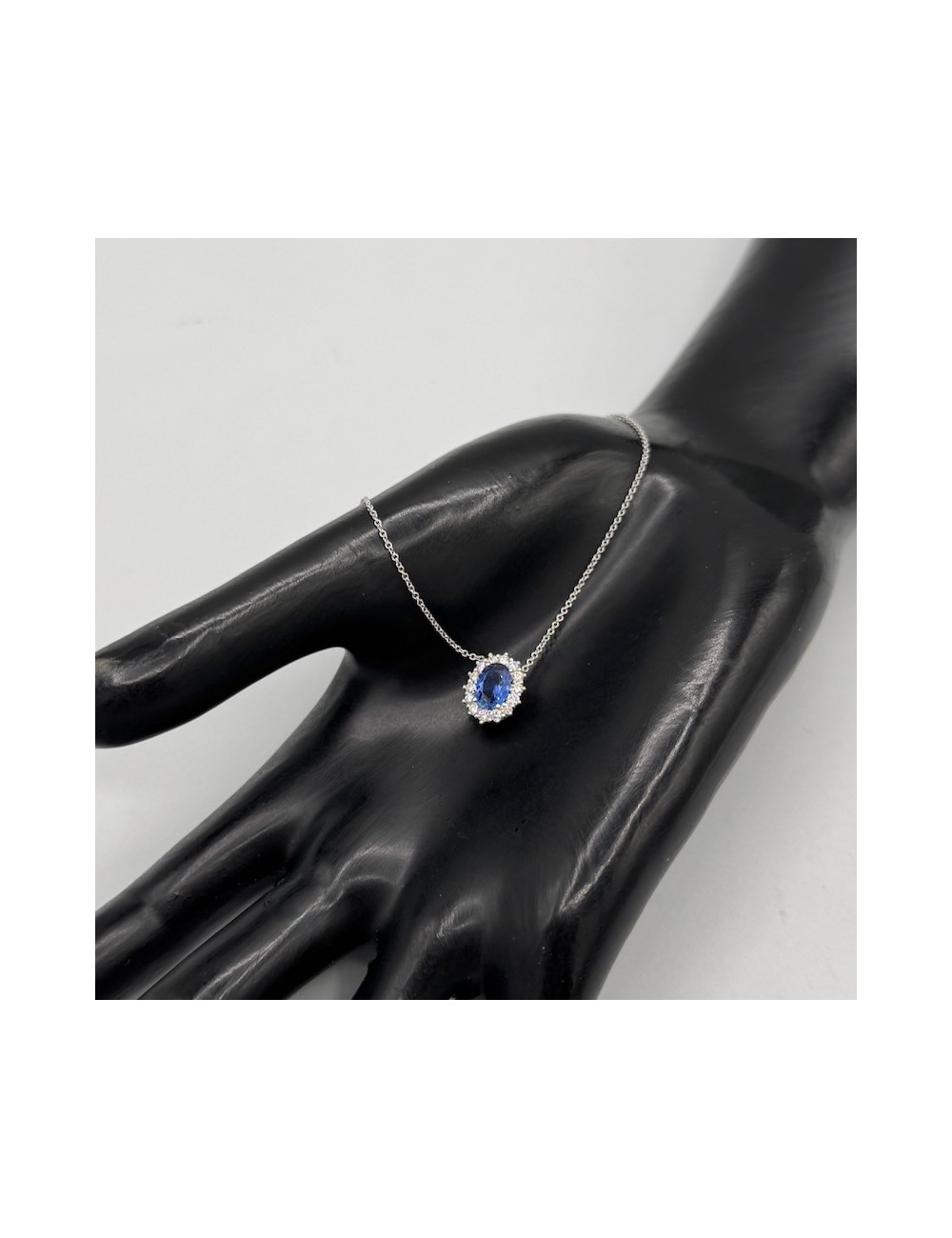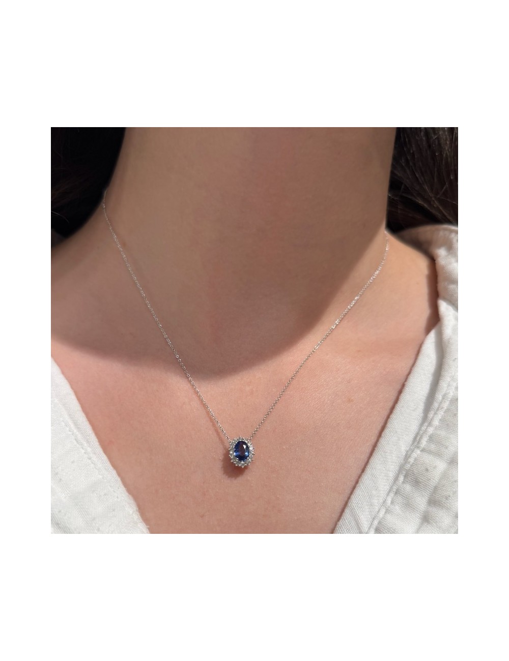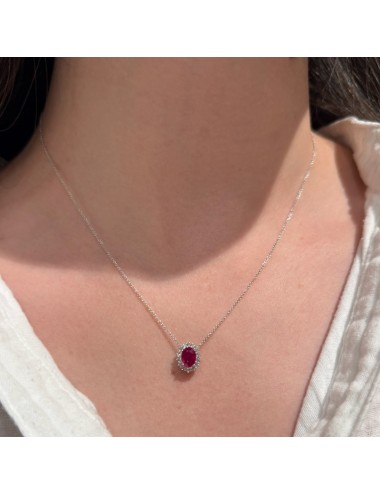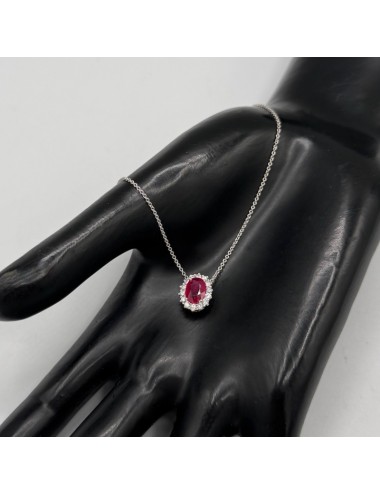 Girocollino in oro bianco modello "Kate" con Rubino naturale,Zaffiro blu naturale e contorno di Diamanti F color ct.0,25.