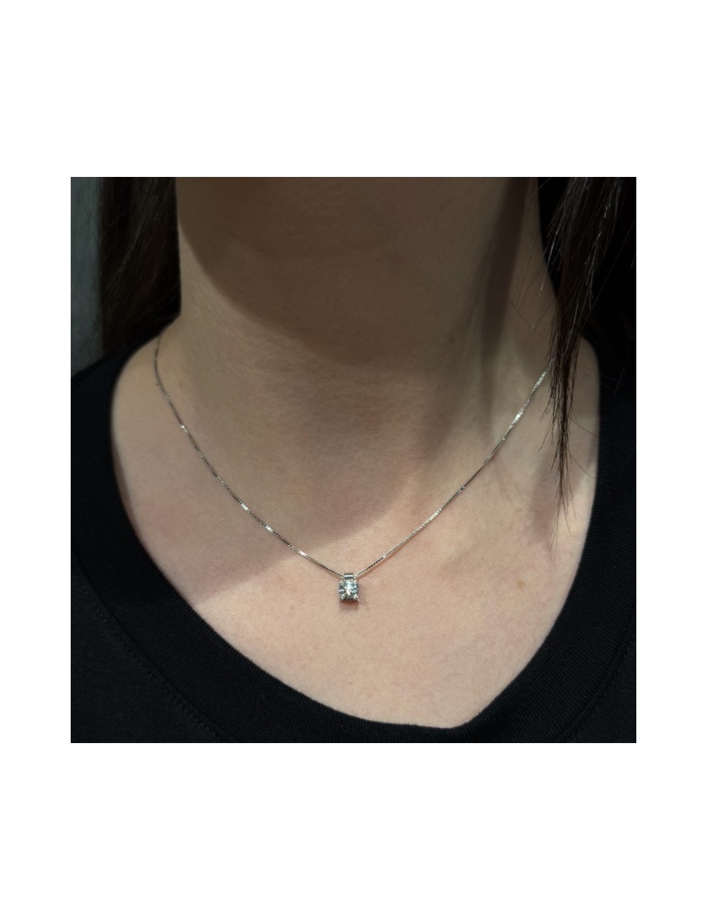 Girocollino in oro bianco modello Punto Luce con maglia "veneta sottile".