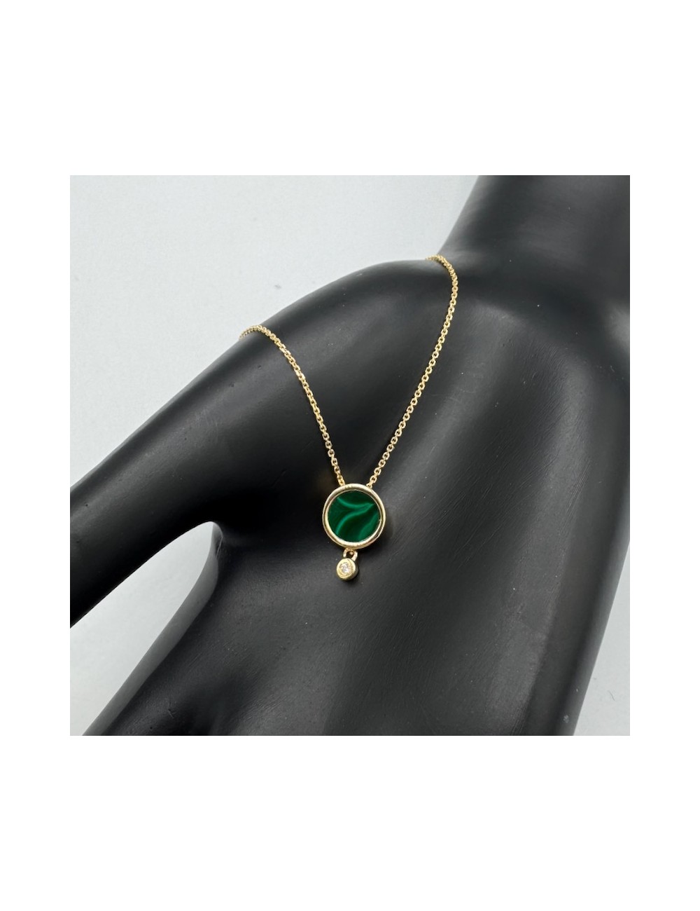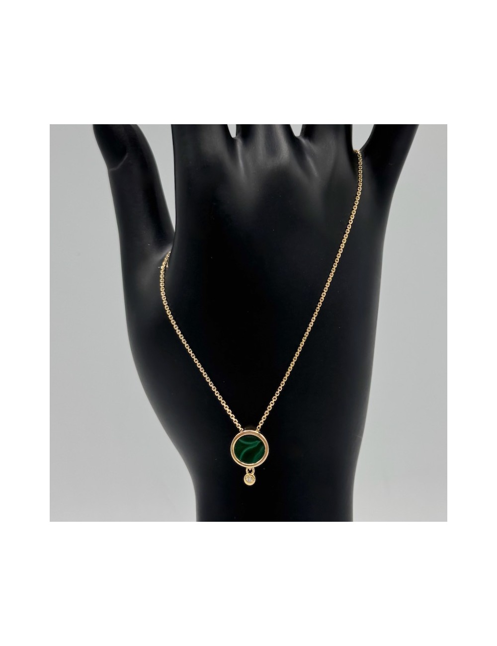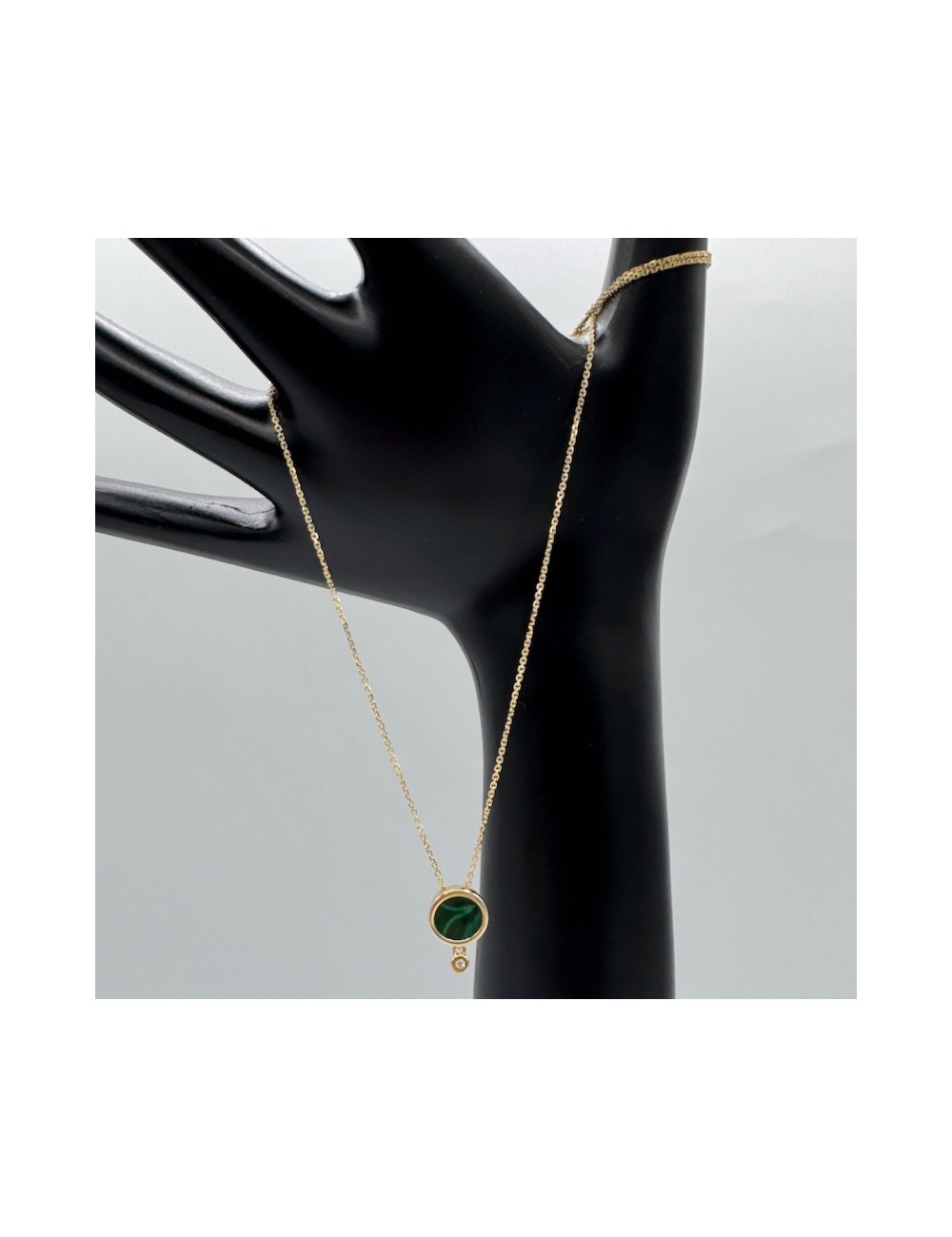 Girocollino in oro giallo 375/1000 con Pietra Malachite rotonda.