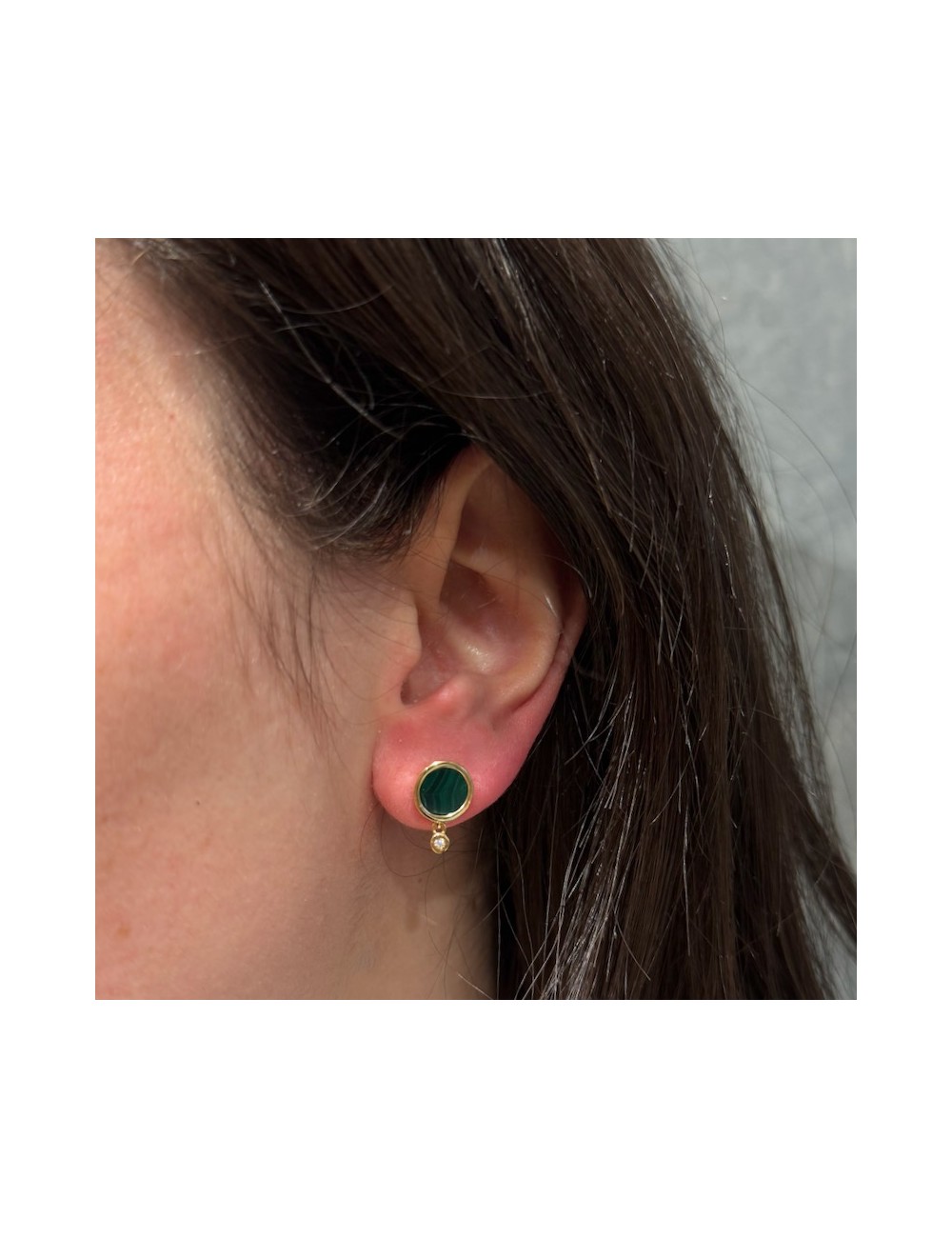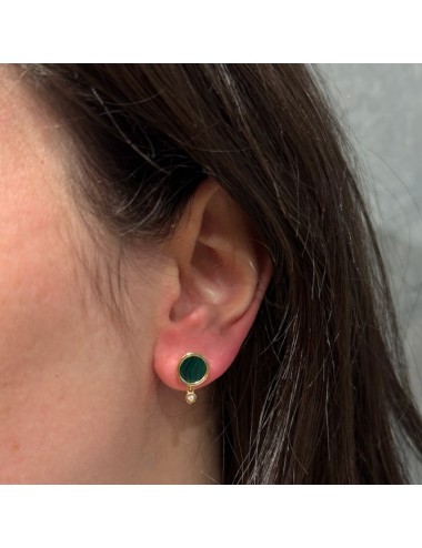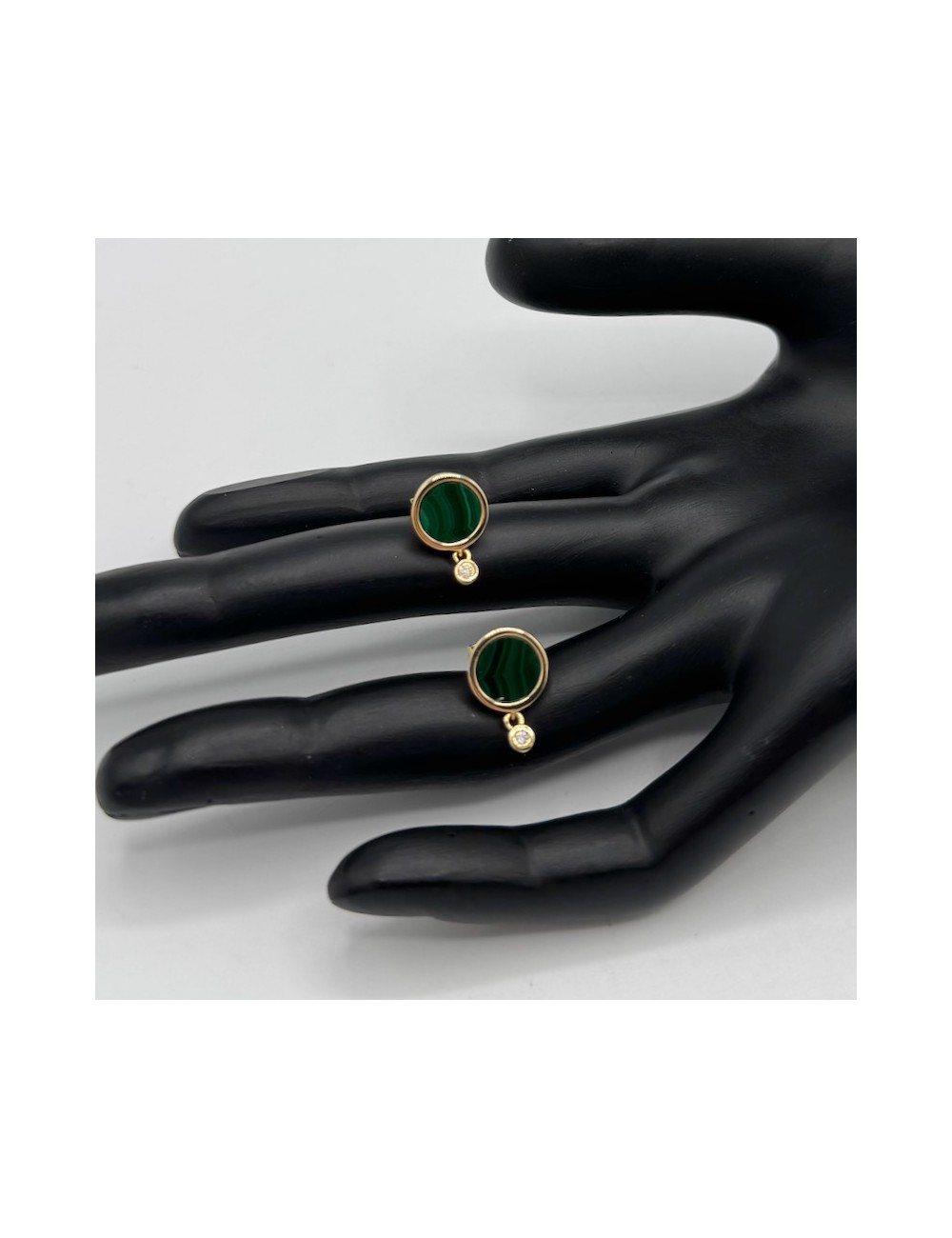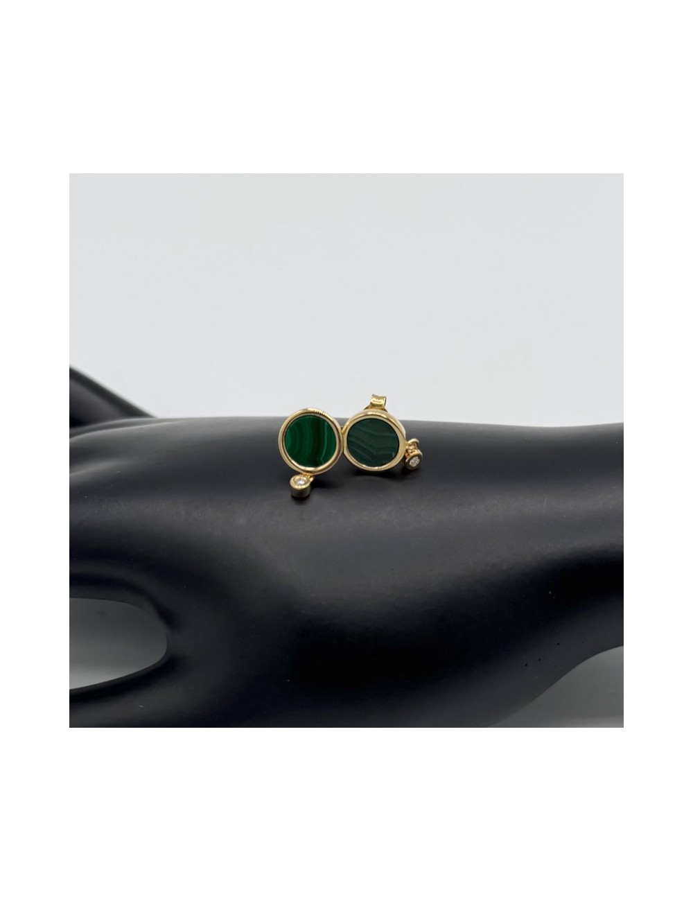 Orecchini in oro giallo 375/1000 con Pietra Malachite rotonda.