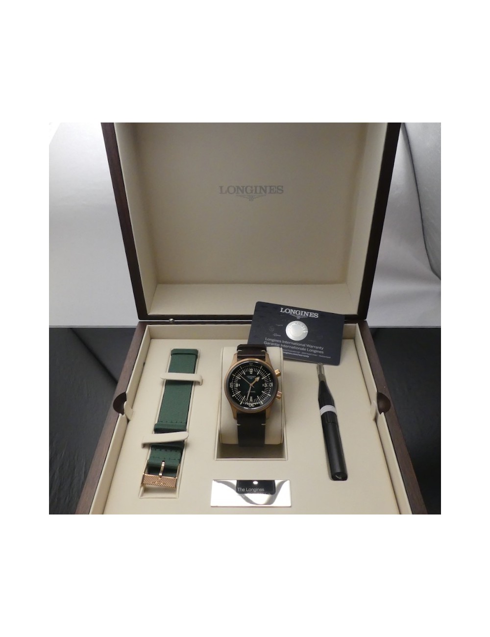 Corredo completissimo con scatola,controscatola,garanzia Longines card Italiana 5 anni(datata 10.08.2022),libricini vari,cartellino,secondo cinturino e spernatore.