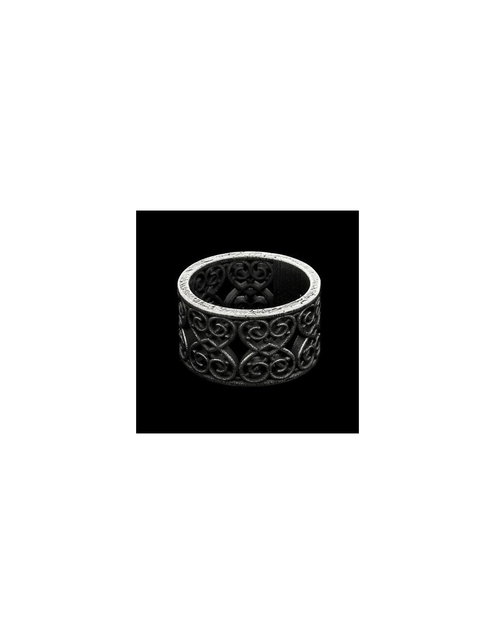 Materia Amor è un pegno d'amore, un intreccio di vite, una promessa di unione. Un anello ruvido e romantico allo stesso tempo. Un fine traforo di cuori in argento a formare un motivo intimo e complice. Anello realizzato in Ag925 anticato a mano.