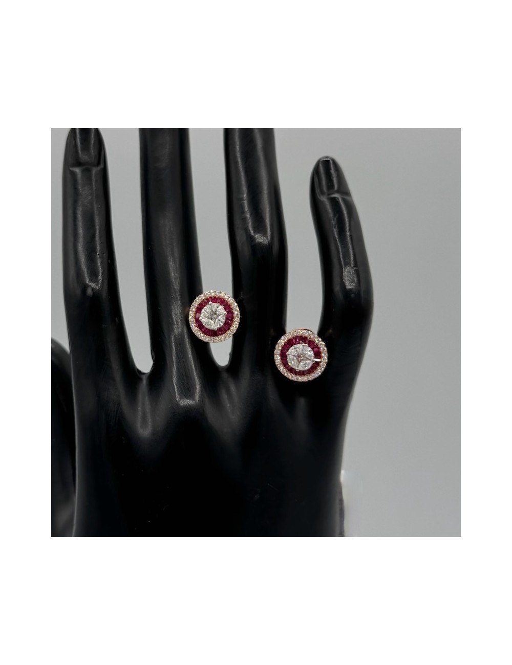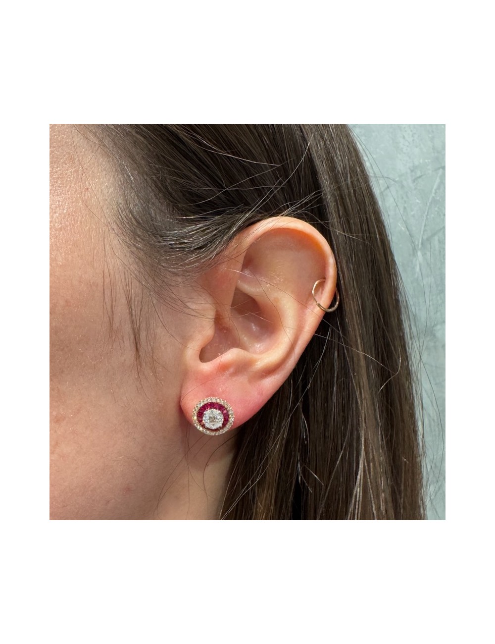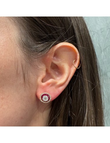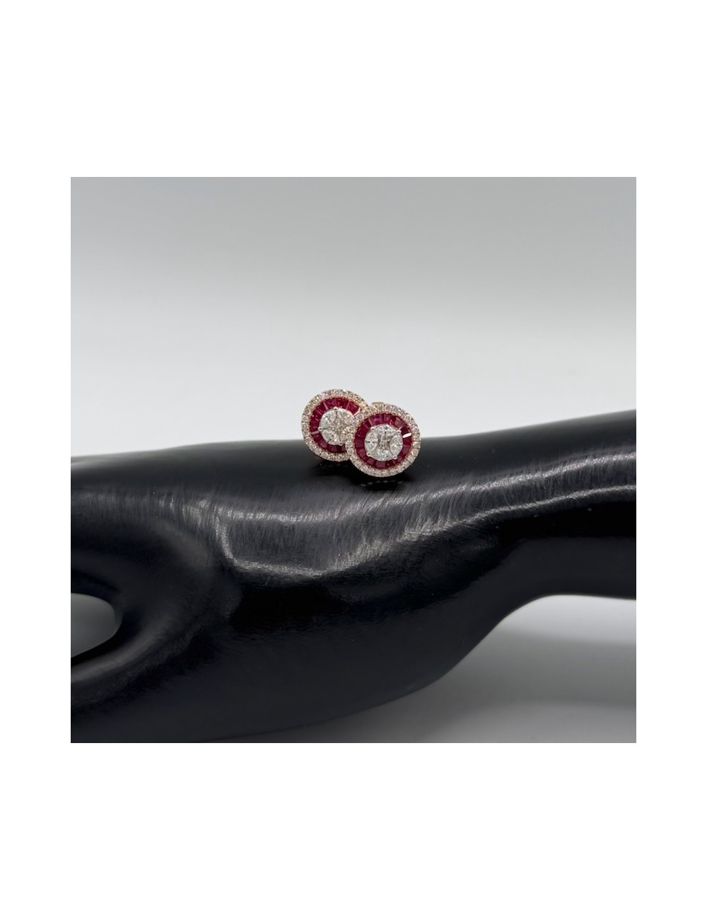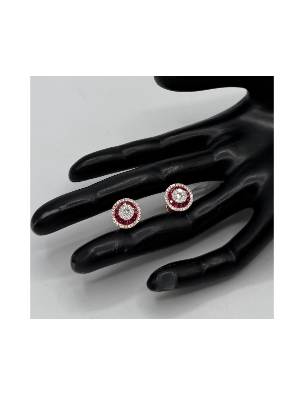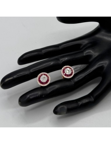 Orecchini tondi in oro rosa con Rubini naturali taglio Baguette ct.1,45.