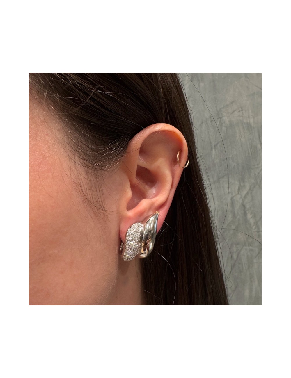 Orecchini a lobo in oro bianco di forma "ondulata".