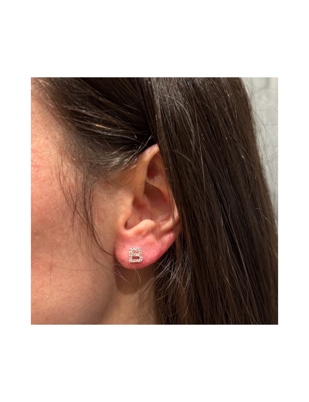 Monoorecchino in oro bianco con iniziale B con Diamanti taglio Brillante,G color,ct.0,10.