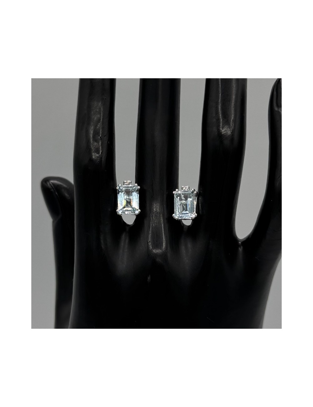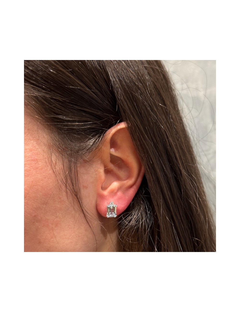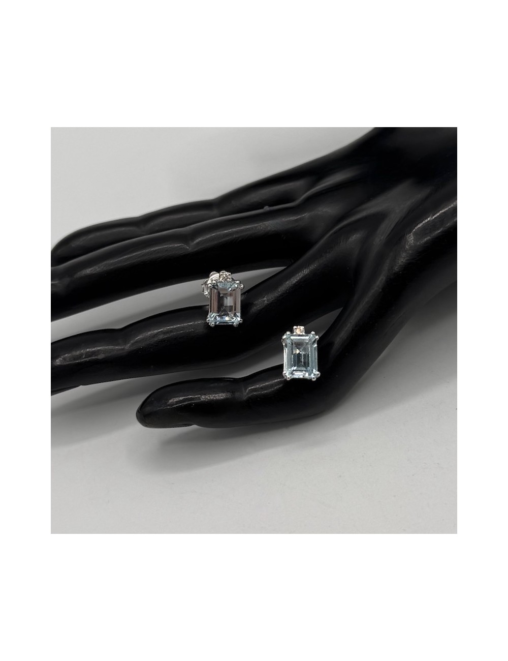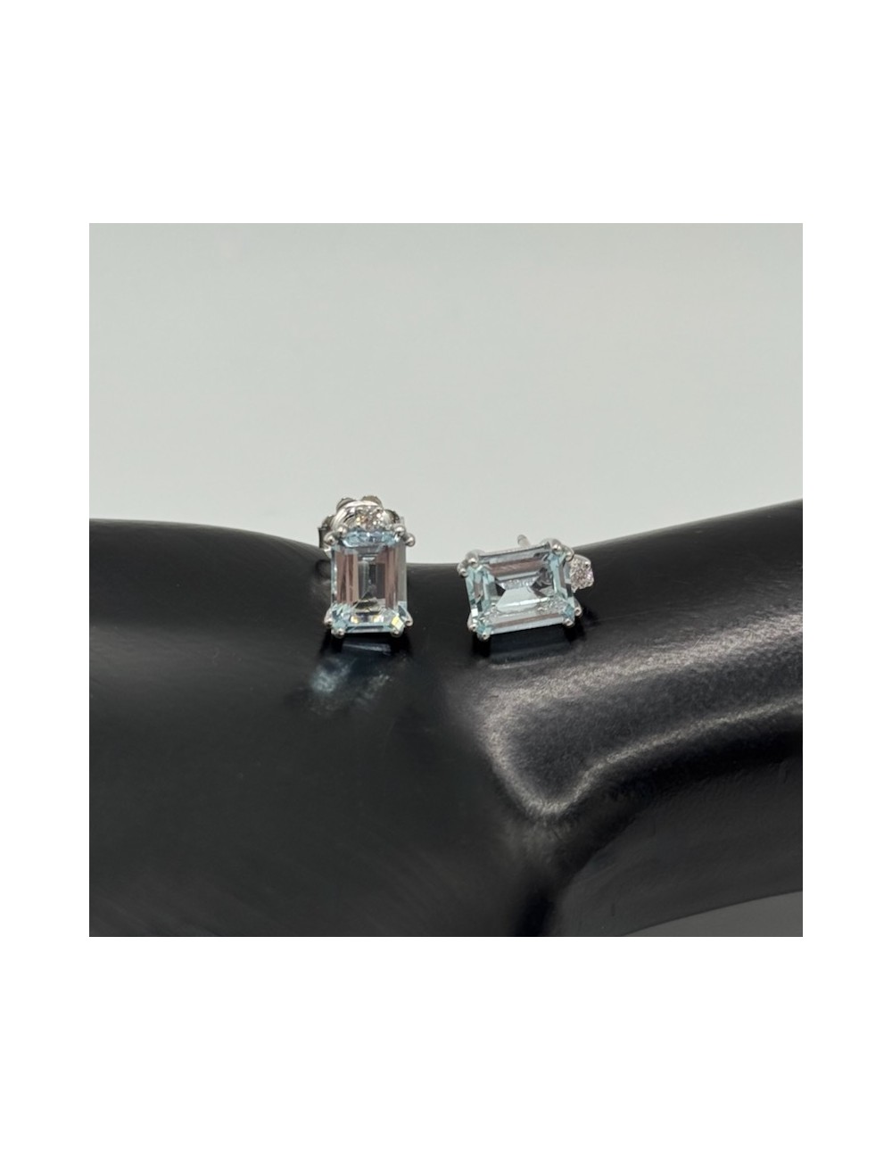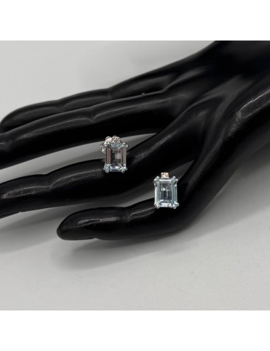Orecchini a lobo in oro bianco con 2 Pietre Acqua Marina naturali taglio "Smeraldo" ct.2,79.