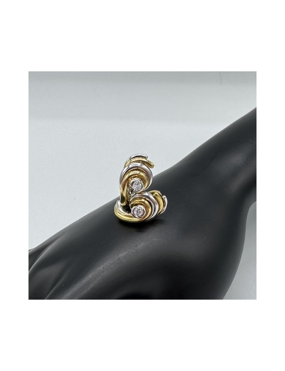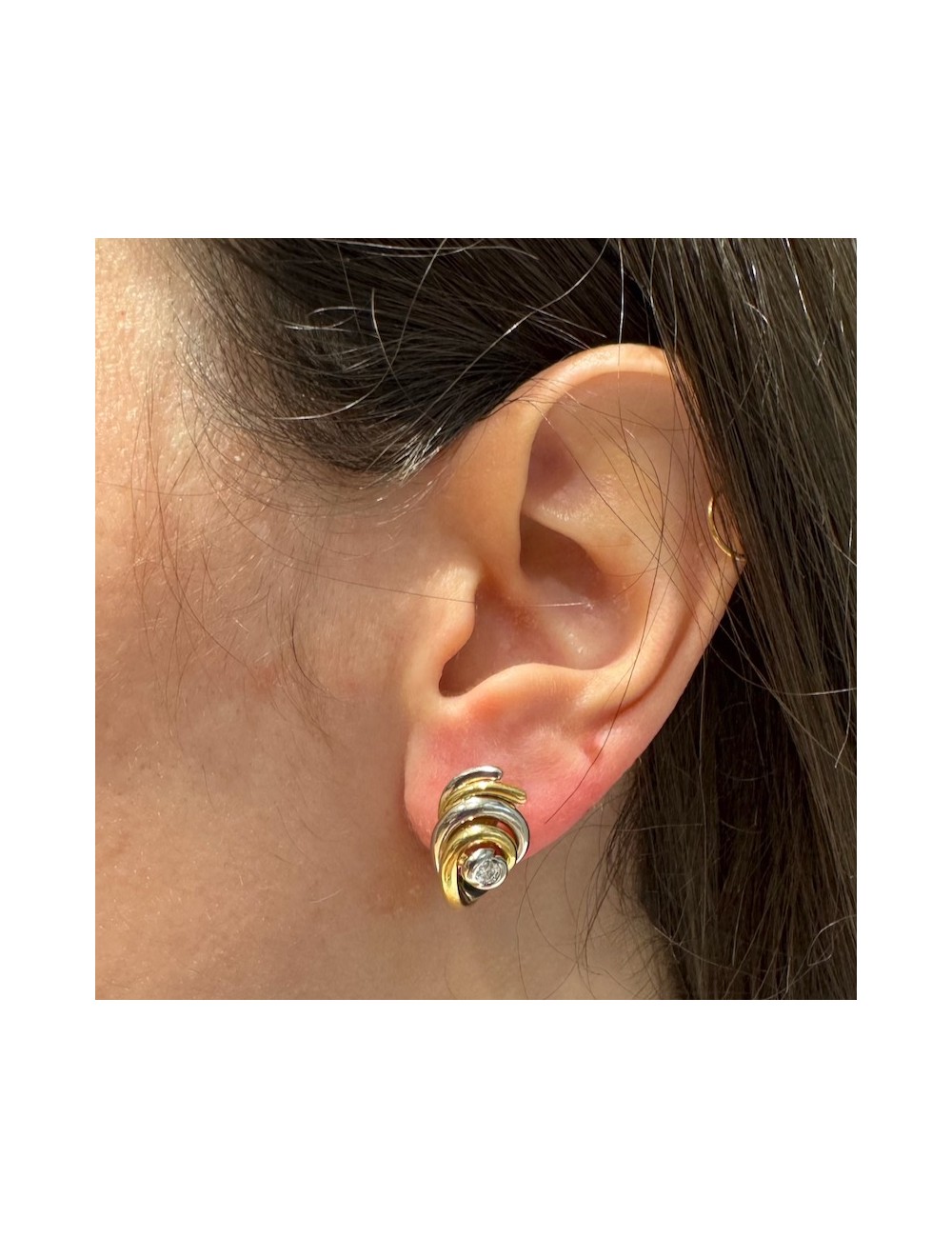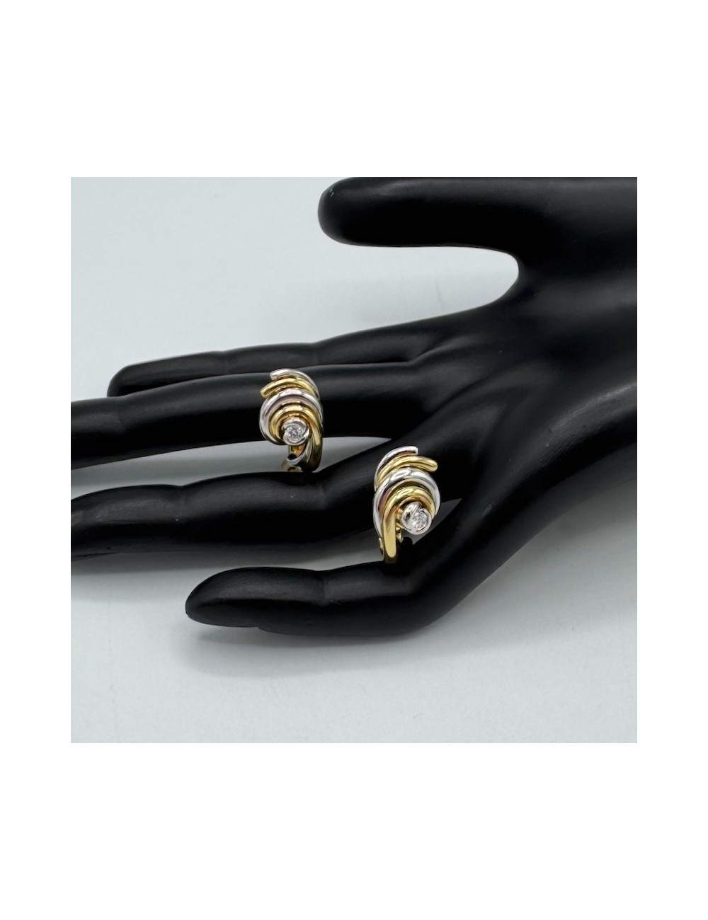 Orecchini in oro bianco e giallo di forma "design ondulato".