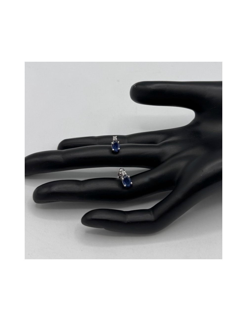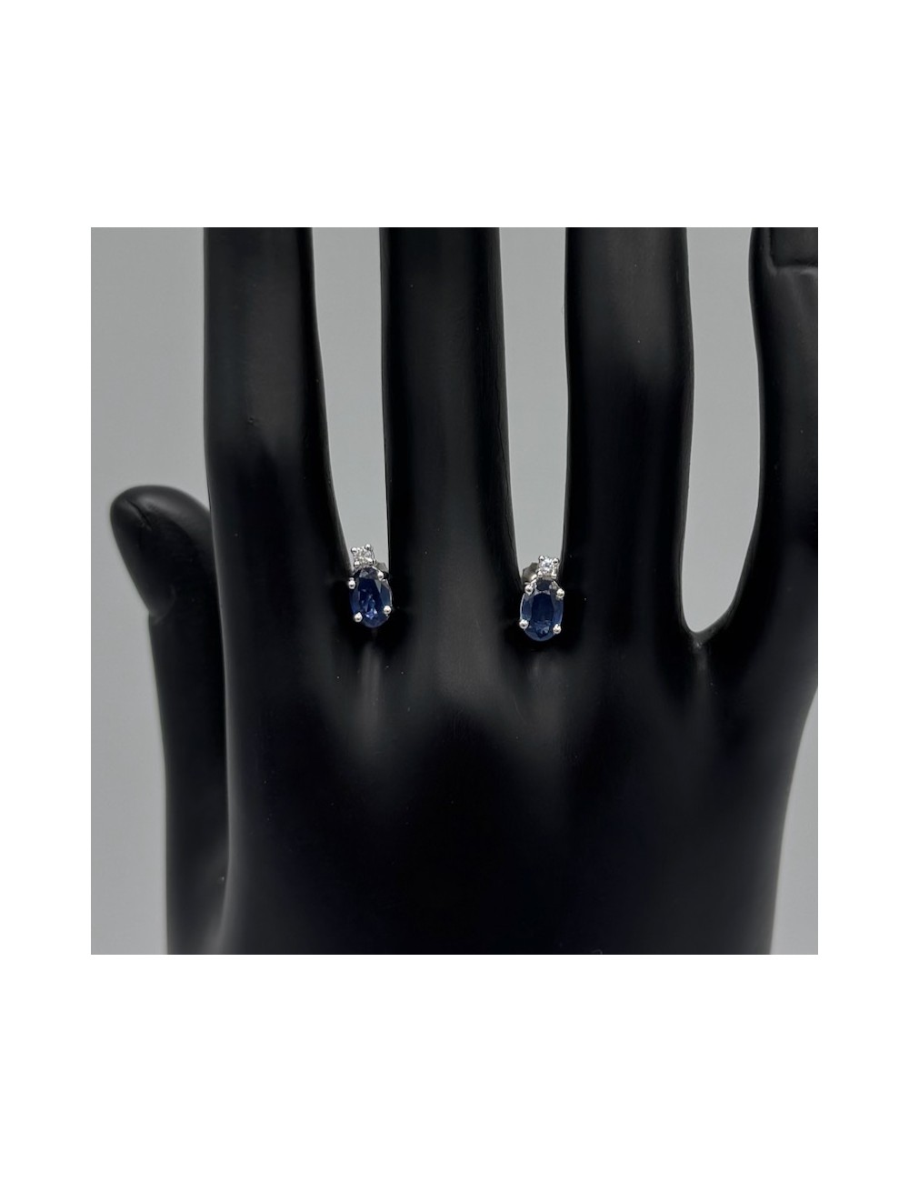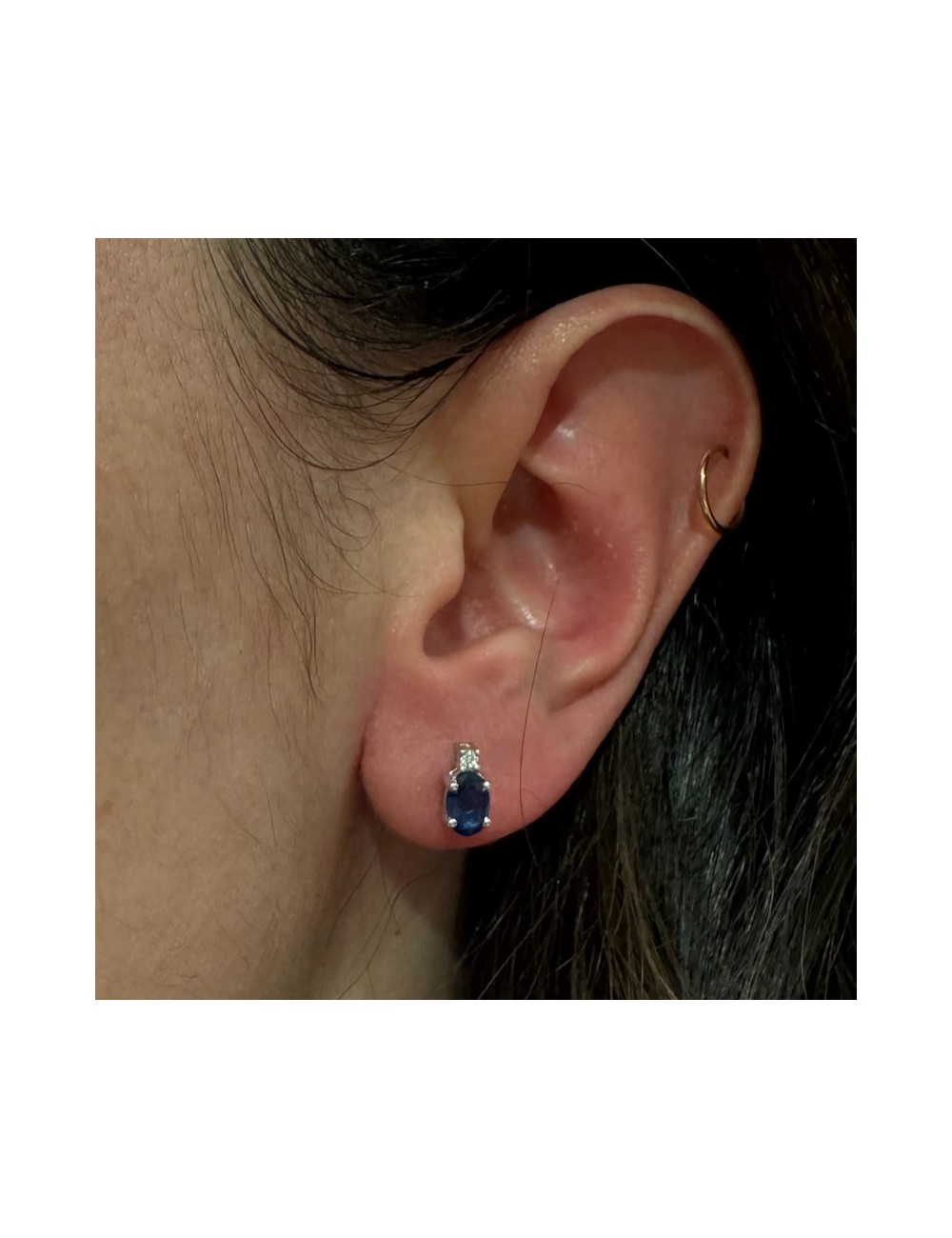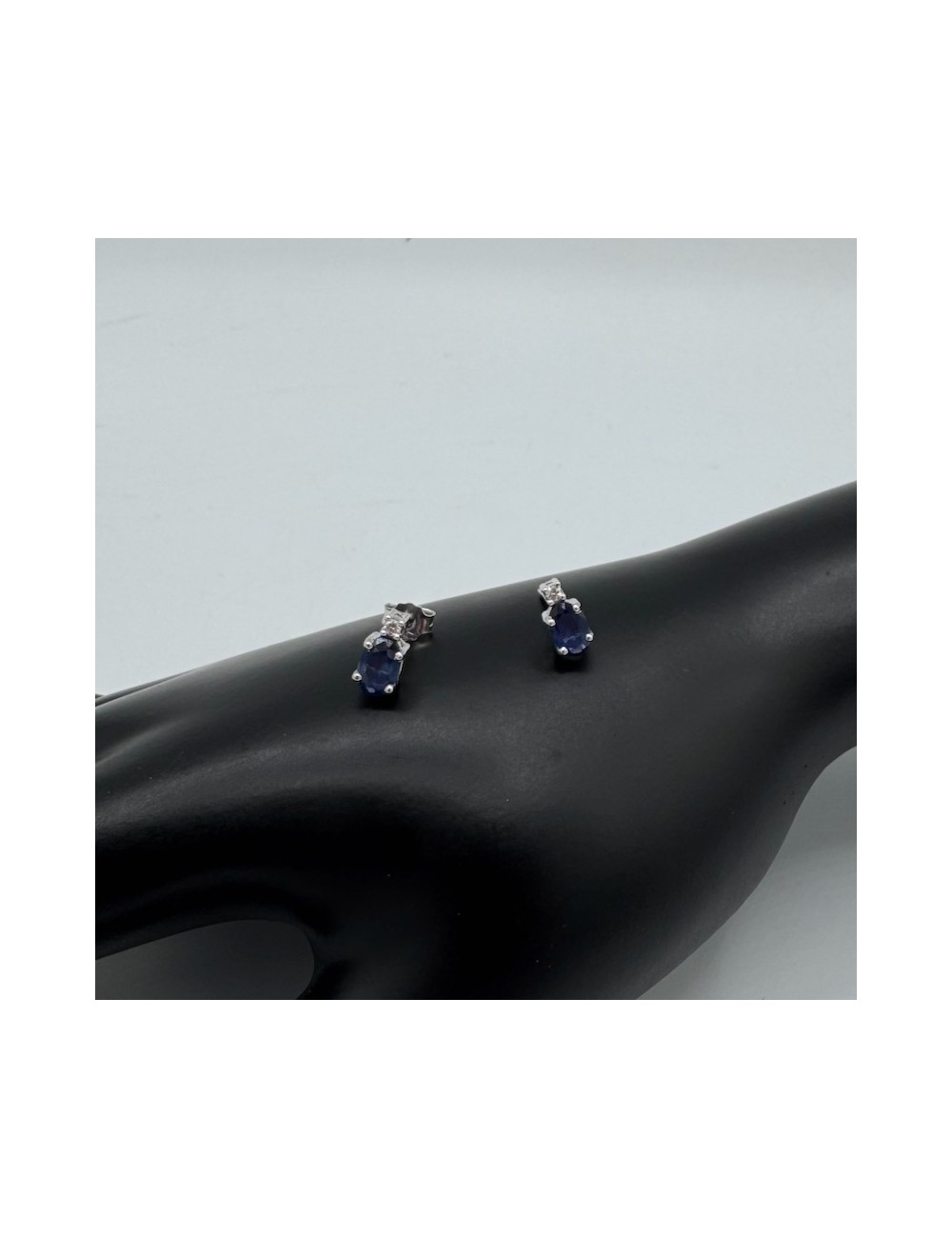 -con 2 Zaffiri naturali taglio "Ovale" ct.1,01 e 2 piccoli Diamantini G color ct.0,04. 830€