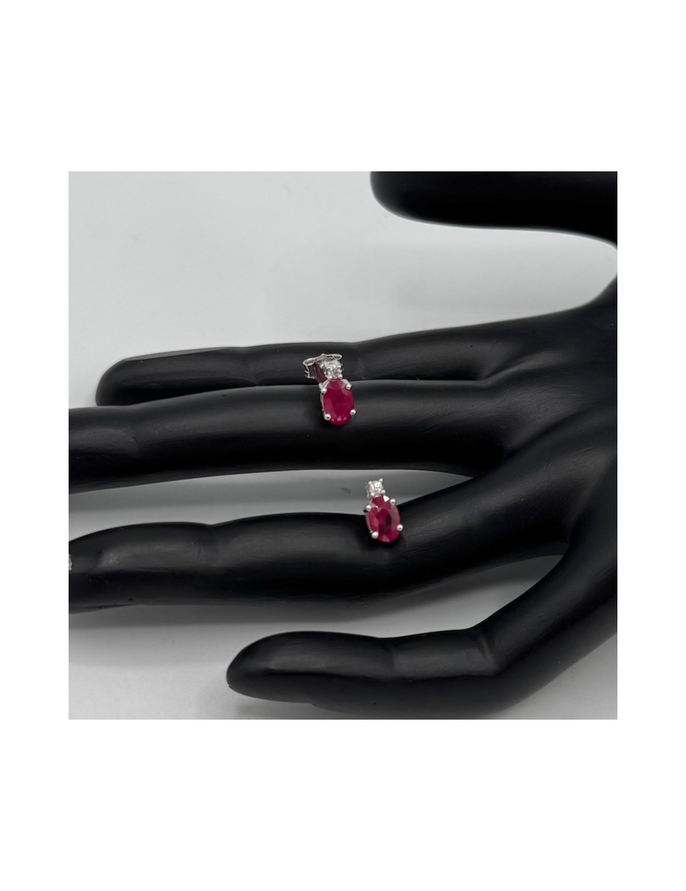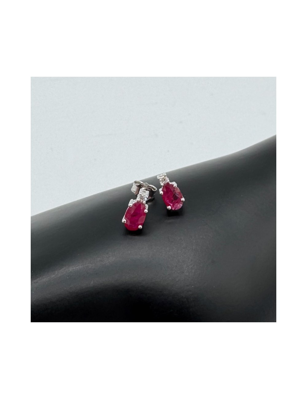 -con 2 Rubini naturali taglio "Ovale" ct.0,99 e 2 piccoli Diamantini G color ct.0,04. 830€
