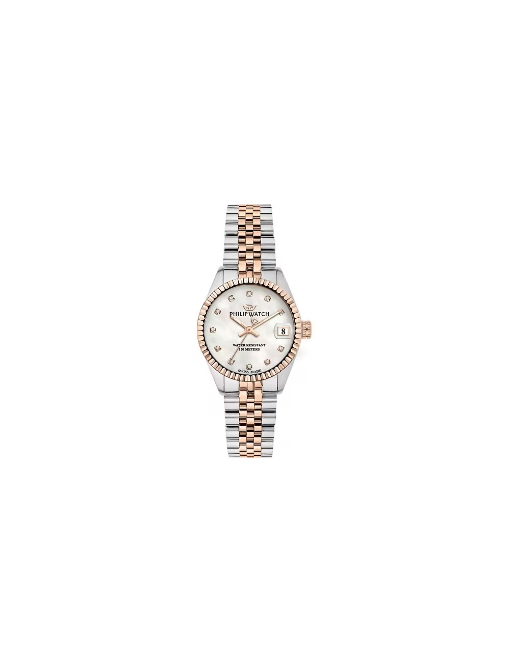 L'Orologio Multifunzione Philip Watch Caribe è pensato per la Donna moderna che cerca eleganza e funzionalità. Questo modello iconico della collezione Caribe di Philip Watch si distingue per il suo design raffinato, offrendo una versatilità quotidiana e prestazioni affidabili. La sua estetica ricercata lo rende un accessorio ideale per ogni occasione, perfetto per la Lady che desidera esprimere la propria personalità con stile. Realizzato in Acciaio Inox con un cinturino in resistente metallo nelle tonalità Silver e Rosa, l'Orologio Philip Watch Caribe è impreziosito da dettagli Pvd oro rosa. Il quadrante White mop ospita luminosi Diamanti naturali selezionati h/i, che aggiungono un tocco di esclusività e brillantezza al suo design complessivo e contemporaneo.