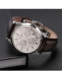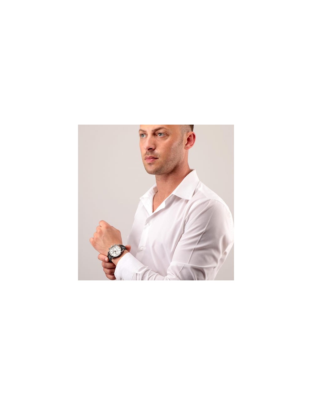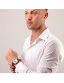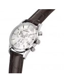 La sua cassa in resistente acciaio esalta il quadrante, protetto da un vetro zaffiro anti-graffio, che garantisce una chiara leggibilità nel tempo. Il movimento al quarzo assicura una precisione impeccabile, mentre il sofisticato bracciale in pelle marrone, dotato di chiusura a farfalla con pulsanti, offre un comfort superiore e una vestibilità sicura.