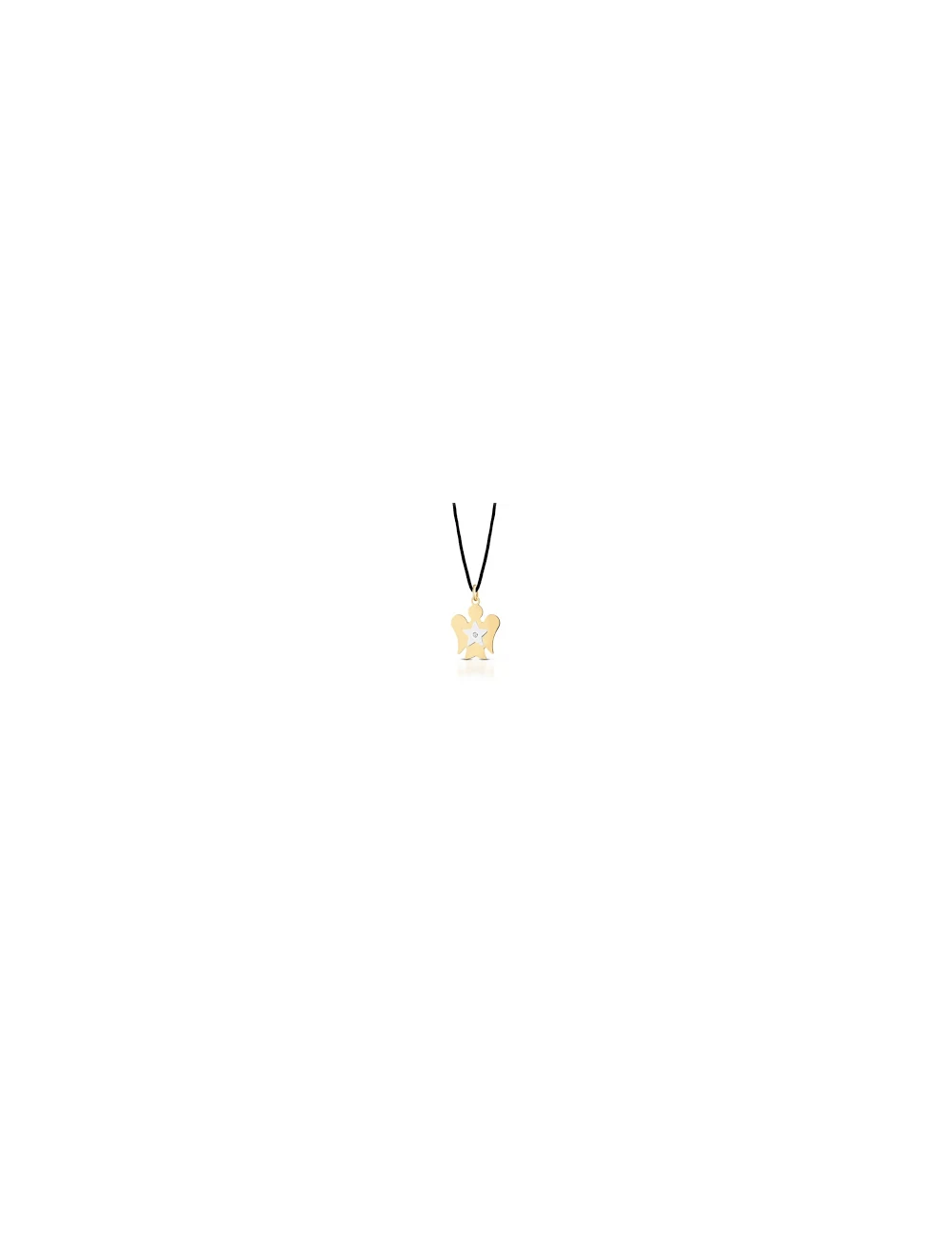 Collana girocollo della collezione Roberto Giannotti Classic da donna. Colore: oro, Il gioiello è realizzato da un cordino nero e da un ciondolo in oro giallo e bianco750‰ (18kt) a forma di angelo con stella e diamante. Dimensioni angelo: 1,05 x 1,35 cm.
