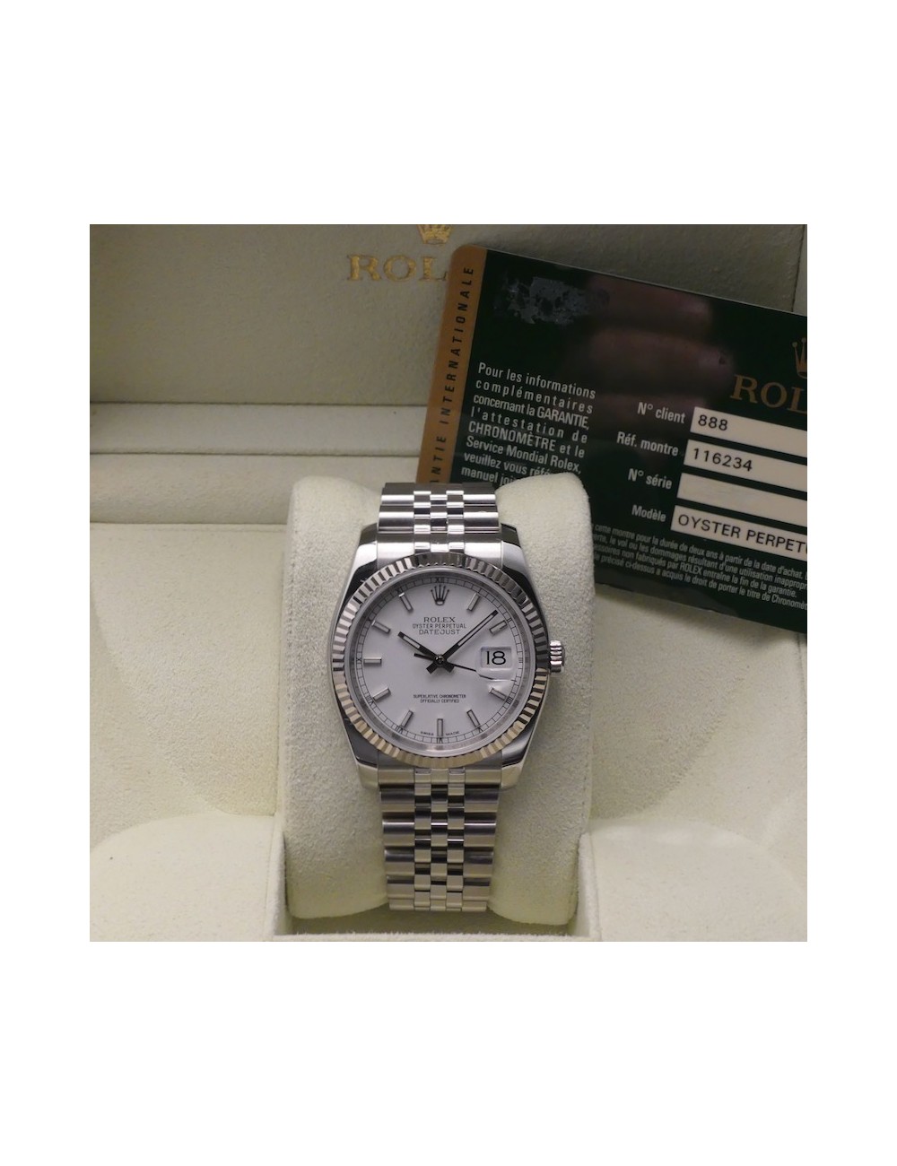 Rolex modello Datejust referenza 116234,36 mm dimensione cassa,acciaio e ghiera oro bianco, bracciale Jubilée a scomparsa.
