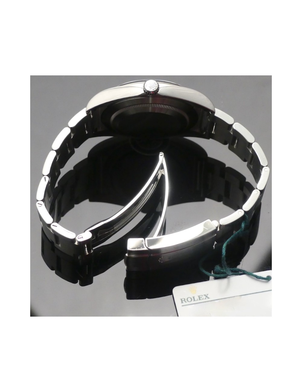 Indossato pochissimoe con corredo completo di scatola,controscatola,garanzia Rolex card bicolore(data non indicata),portagaranzia,libricino e cartellino con seriale e referenza indicati.