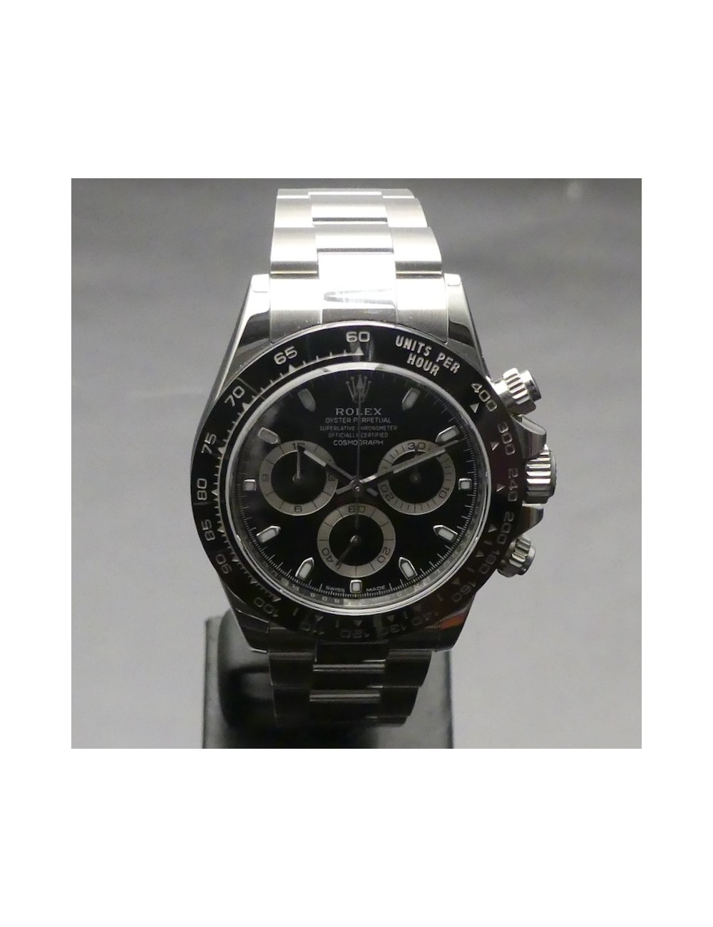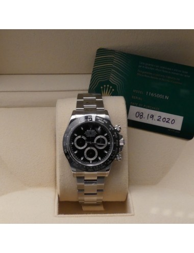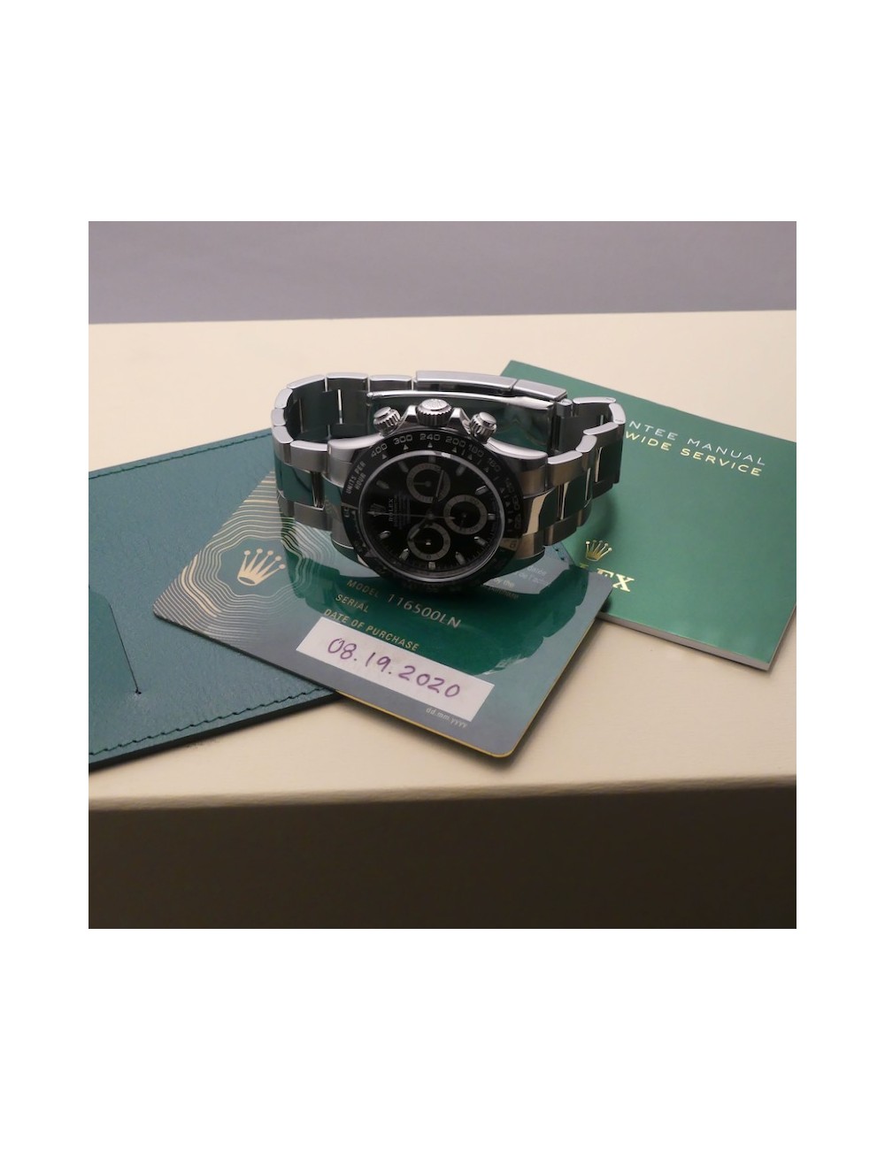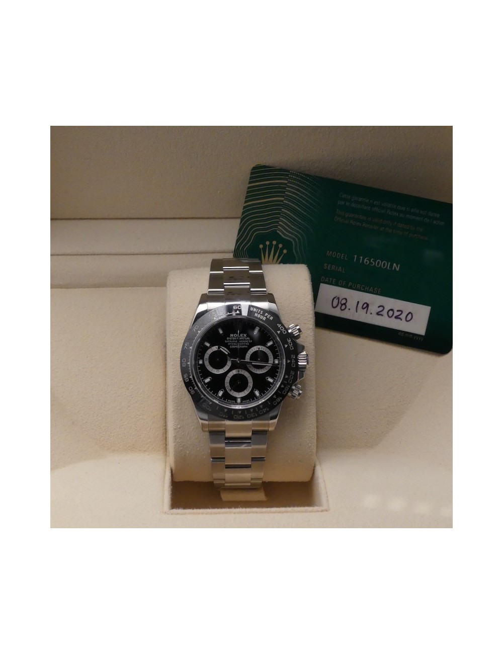 Rolex modello Daytona in acciaio,referenza 116500LN,quadrante nero e ghiera ceramica nera.Seriale alfanumerico,anno 2020.