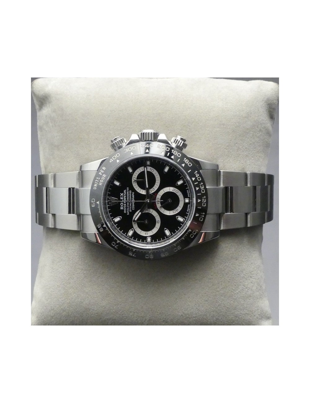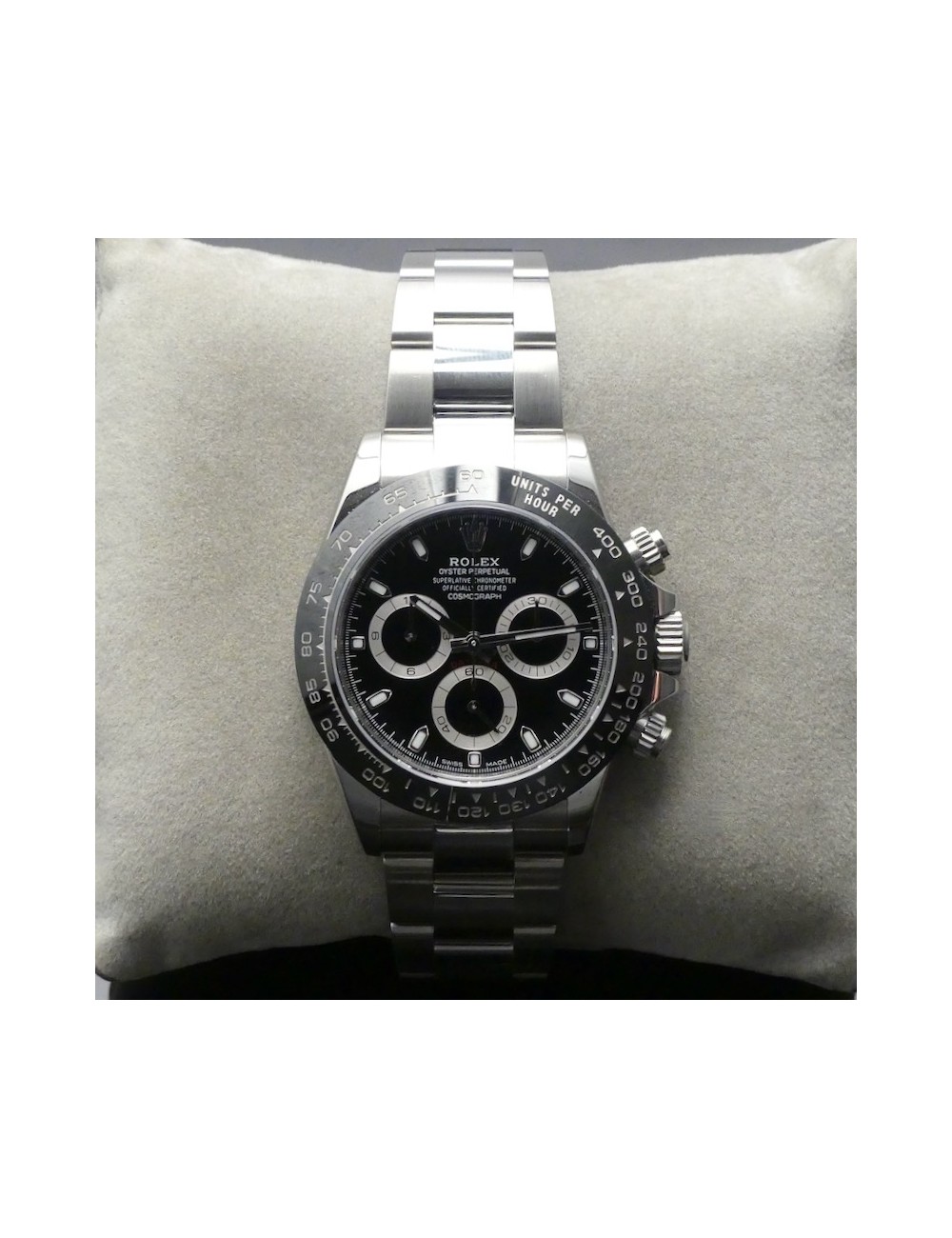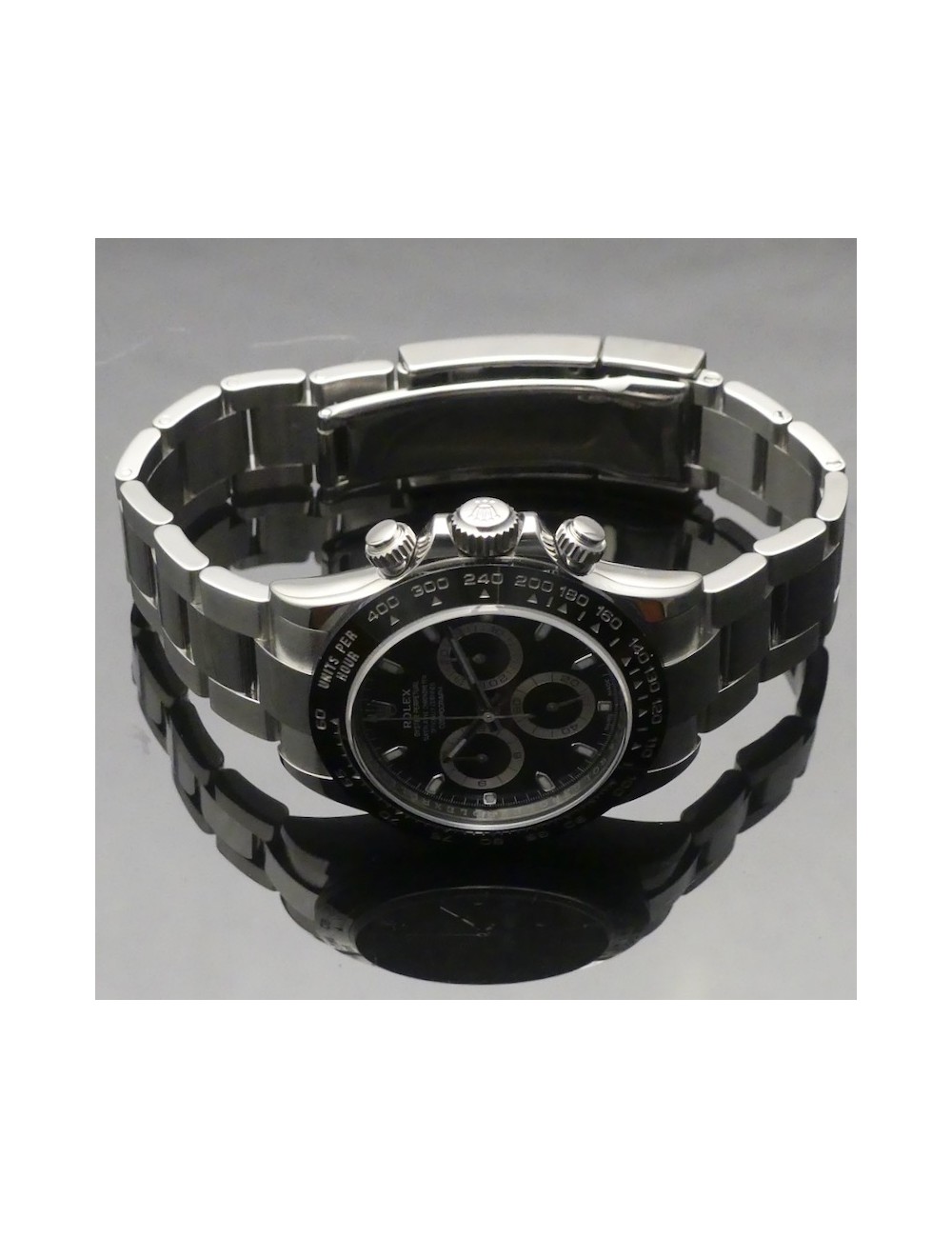 Rolex modello Daytona in acciaio,referenza 116500LN,quadrante nero e ghiera ceramica nera.Seriale alfanumerico,anno 2020.