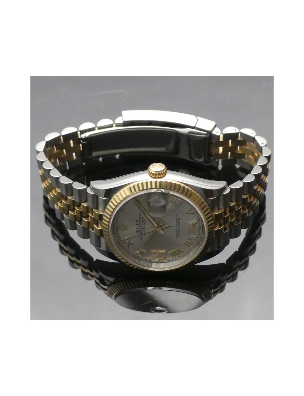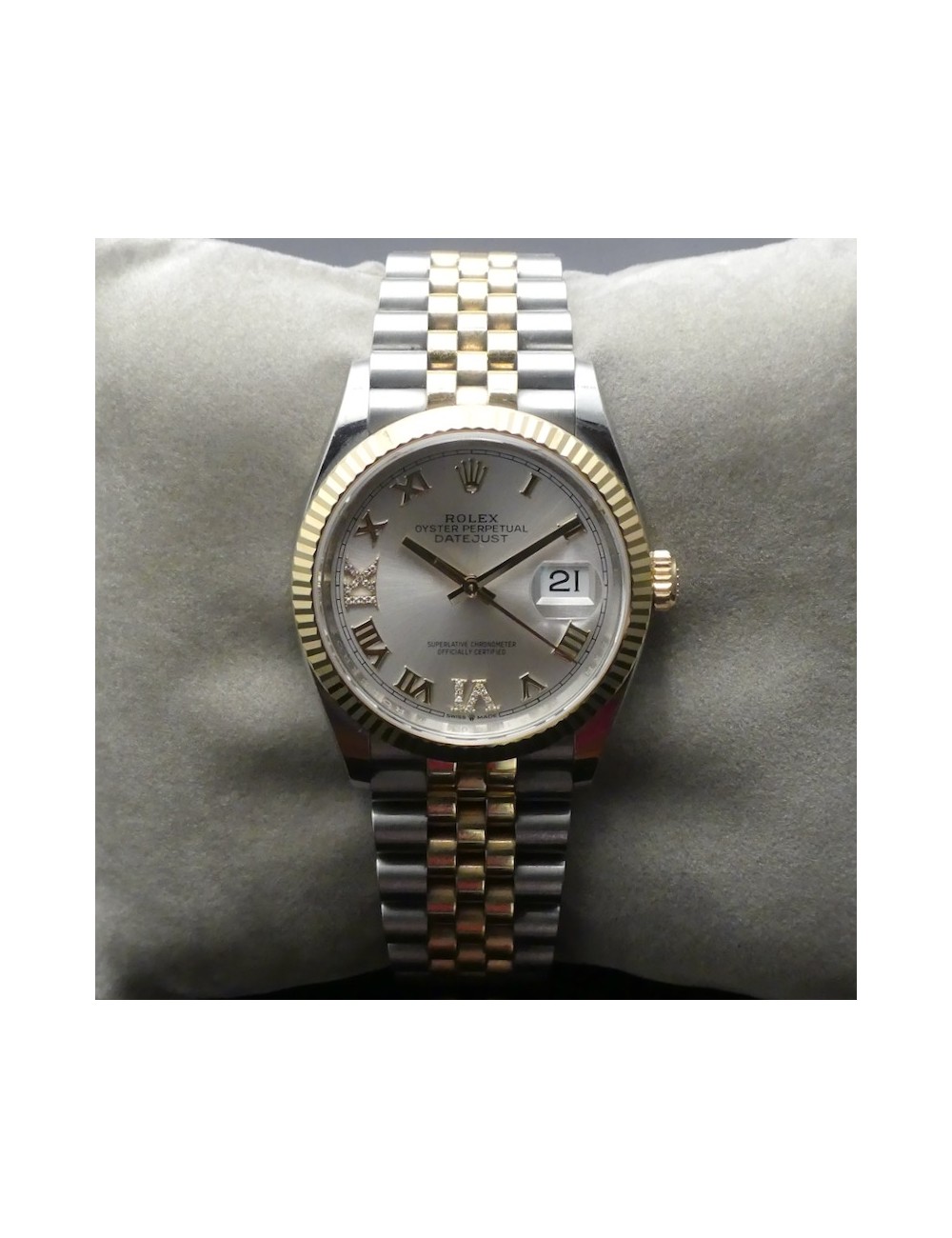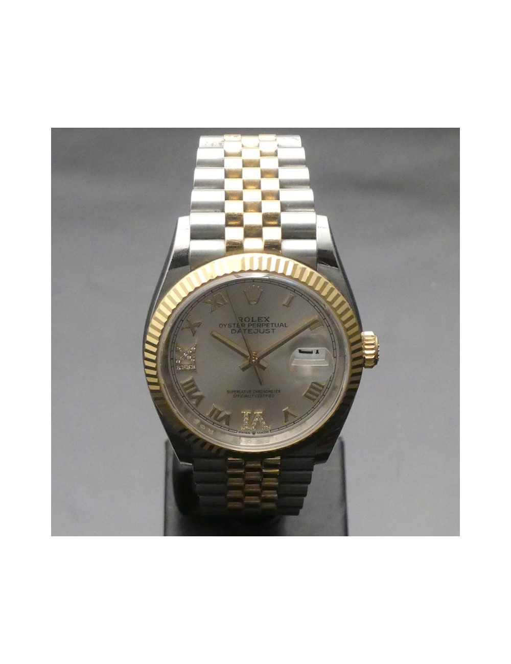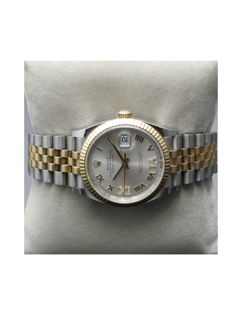 Condizioni pari al nuovo con meraviglioso quadrante Argentato con Diamanti nei numeri romani a ore 6 e ore 9 e cinturino Jubilée acciaio e oro.36 mm dimensione cassa.
