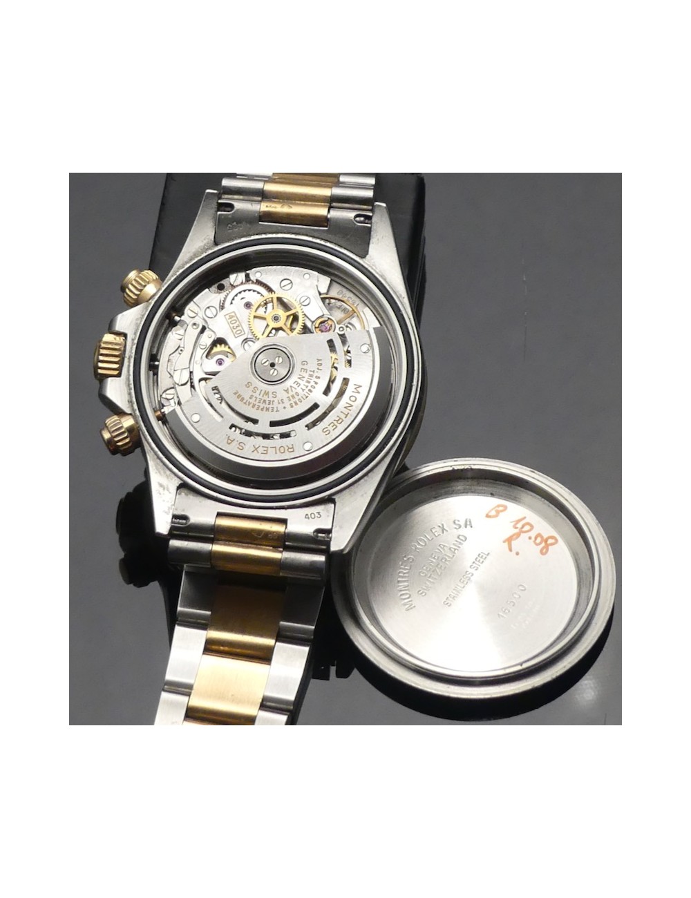 Condizioni molto buone vista l'epoca e completamente coevo con quadrante nero T Swiss Made T con "6 rovesciato",cinturino Oyster acciaio e oro referenza 78363.18 con finali 403 e codice clasp O6(giugno 1990)su chiusura in acciaio satinata a scatoletta e ghiera tachimetrica 400,ondello referenza 16500.