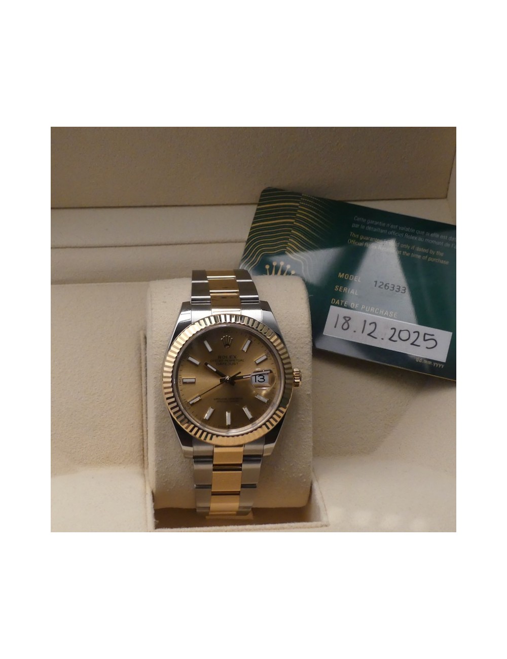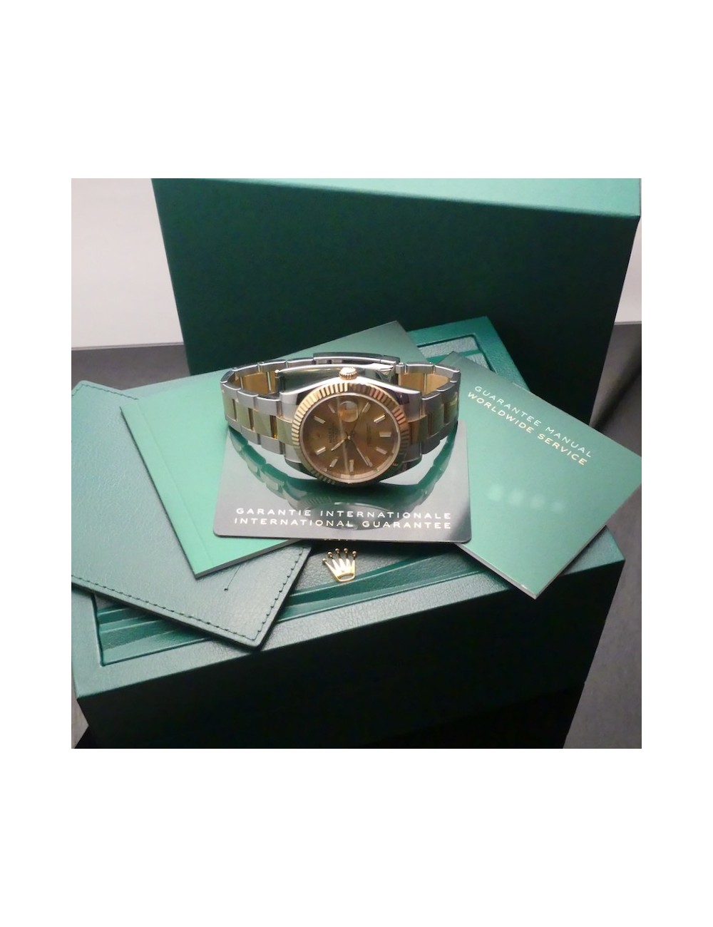Corredo naturalmente completissimo con nuova scatola Rolex,controscatola,nuova garanzia Rolex card 5 anni(datata 18.12.2025),portagaranzia e libricini vari.